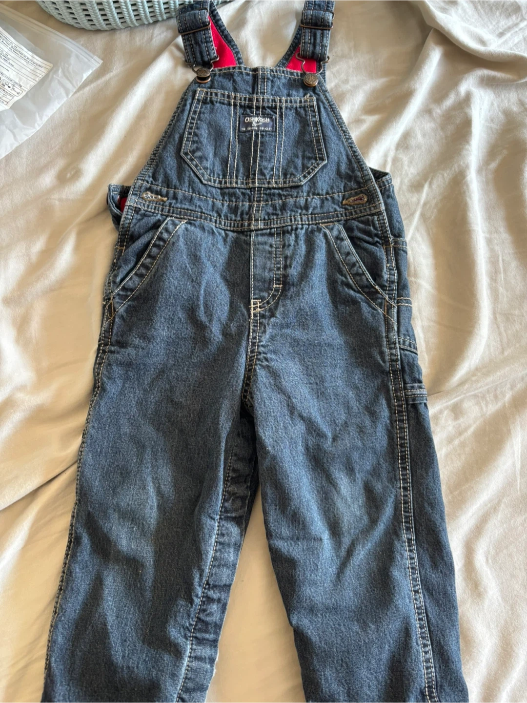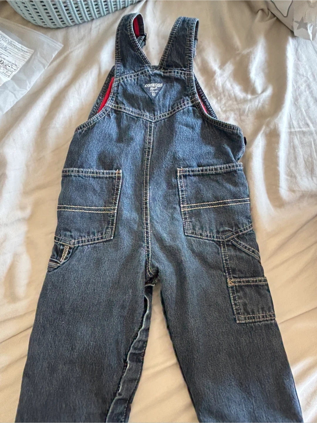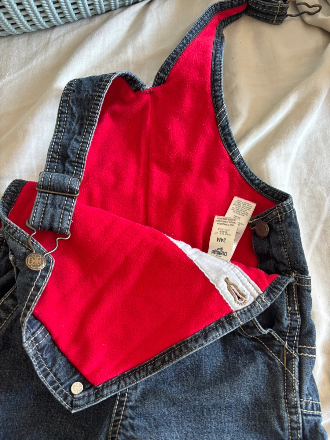 15These OshKosh B'gosh denim overalls are in great condition and ready for a new home! They're size 24M and have a classic denim look with a red lining. Perfect for your little one to play in!