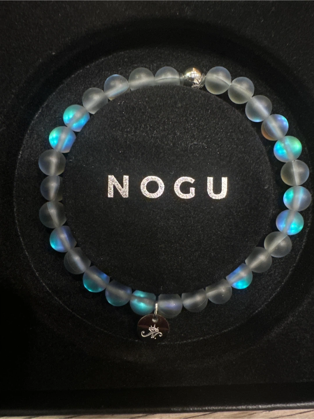Selling a brand new Nogu Aurora bracelet, still in its original box! This beautiful bracelet features iridescent beads that catch the light, giving it a unique and ethereal look. Comes with care instructions and is made with recycled fiber packaging. Perfect as a gift or a treat for yourself!