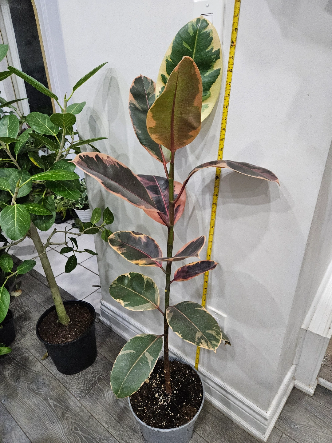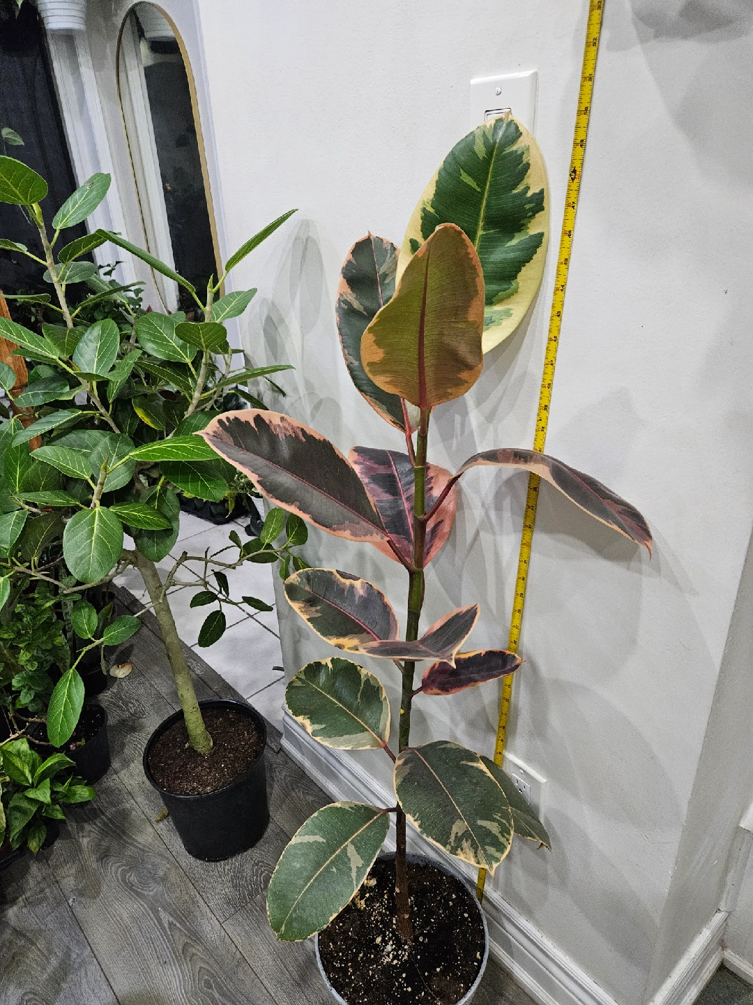 lovely Ficus plants looking for a new home! One is a Ficus Elastica Ruby, known for its striking pink and burgundy leaves about 3-4 feet tall and ready to add some greenery to your space