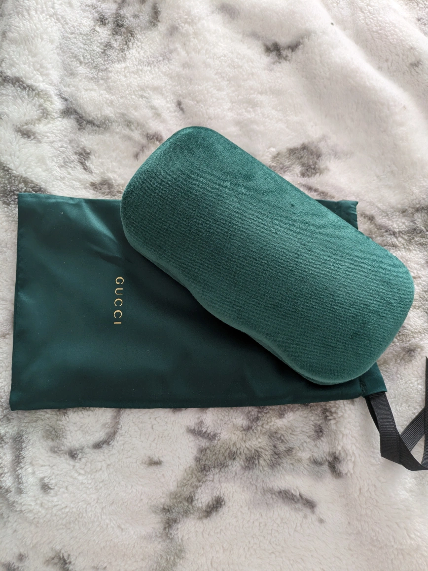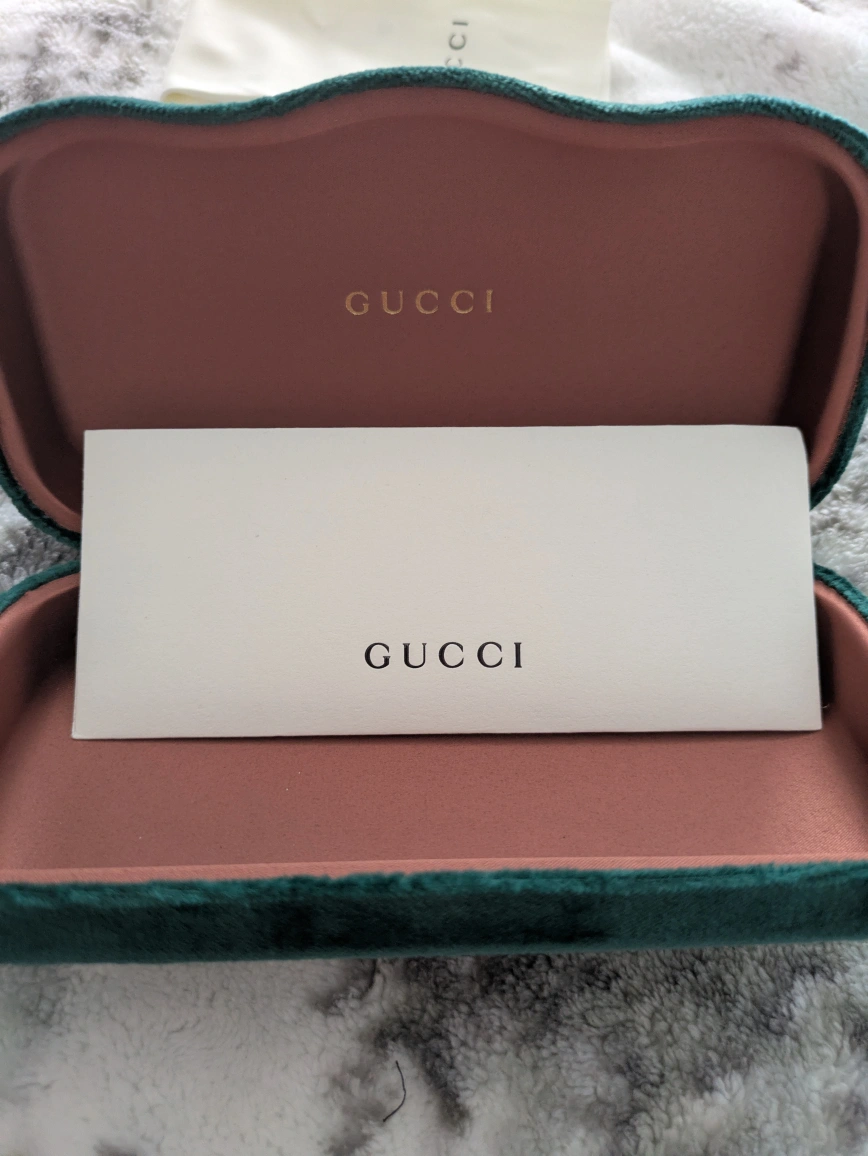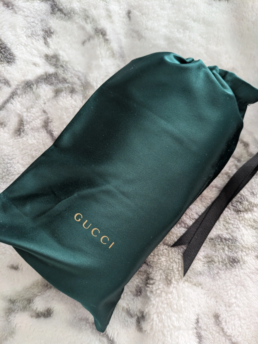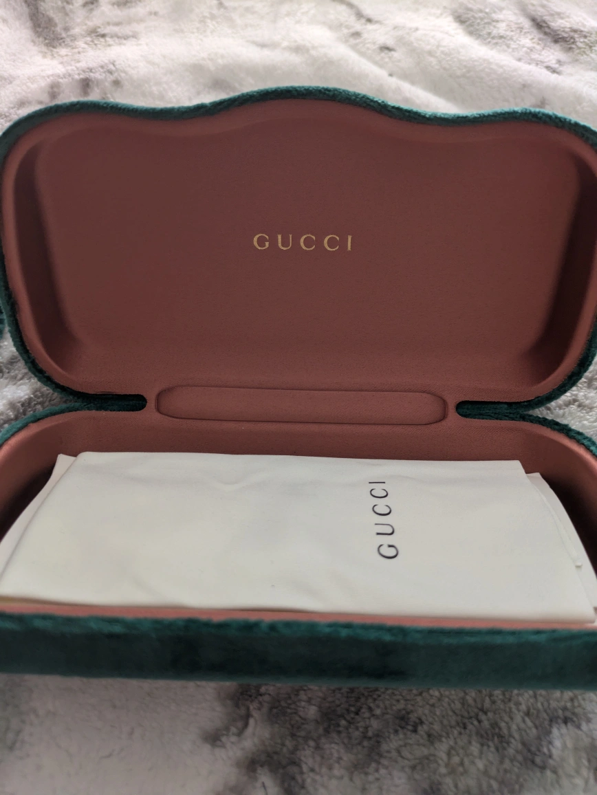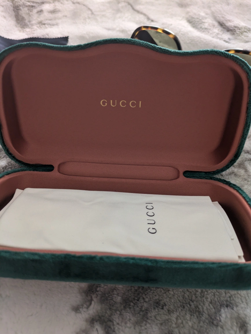 Original Gucci sunglasses with luxurious emerald satin pouch and case. comes with authenticity card and warranty