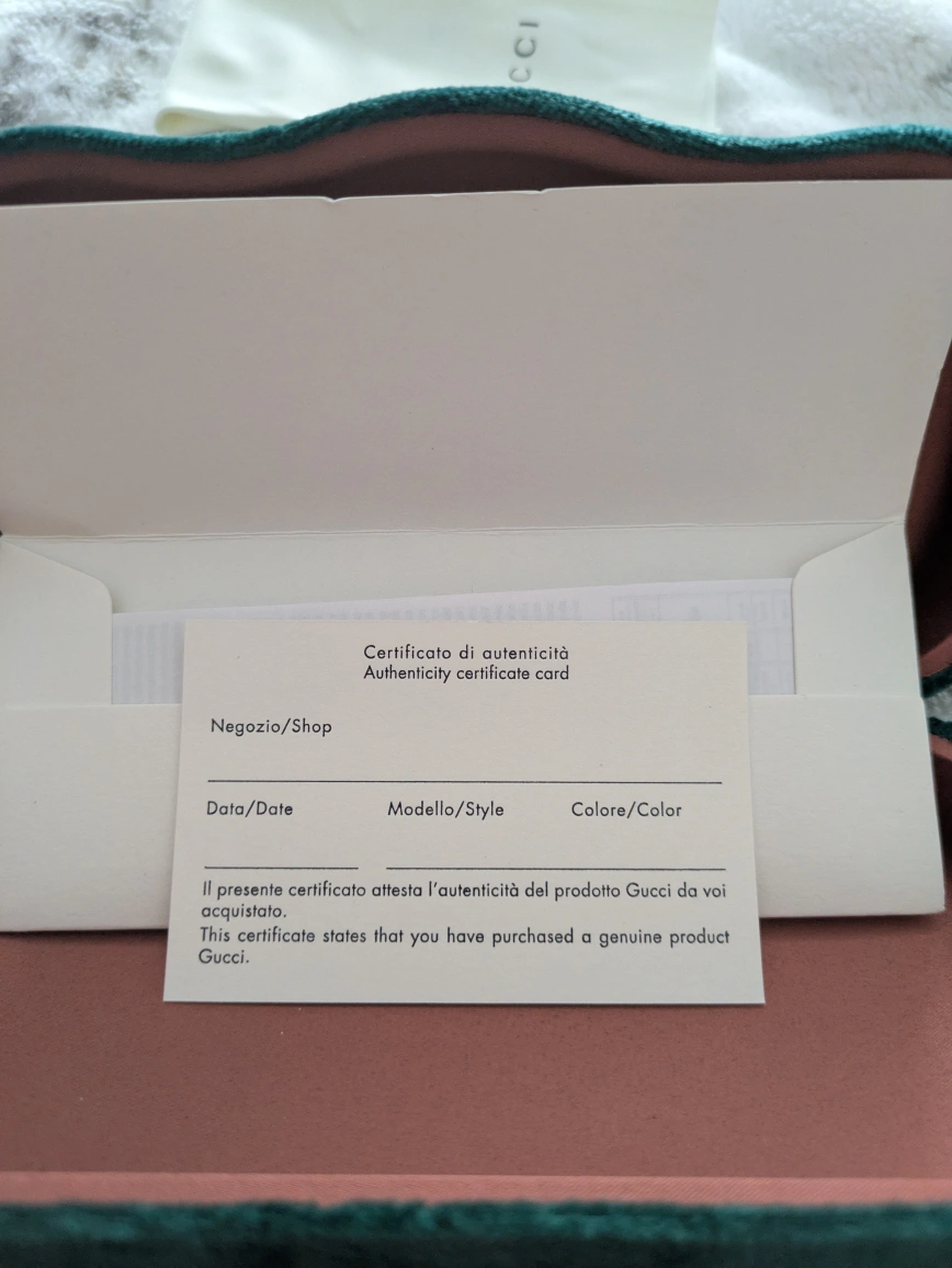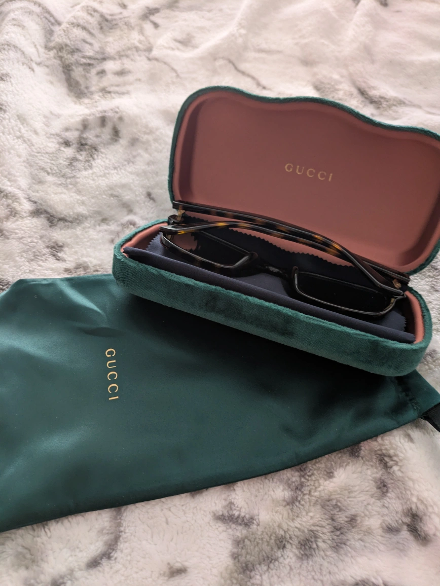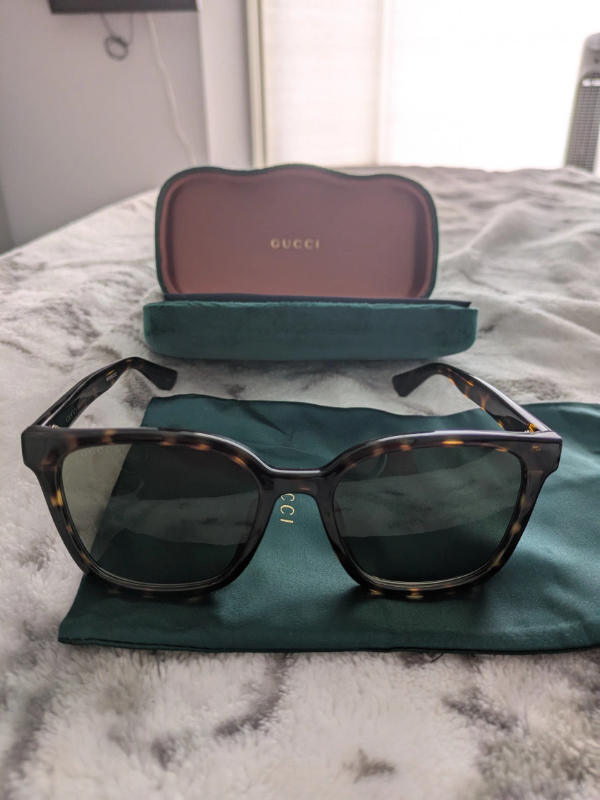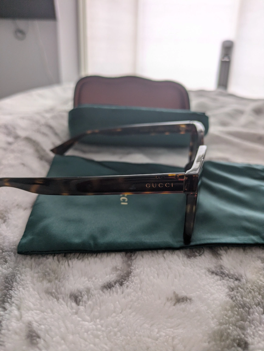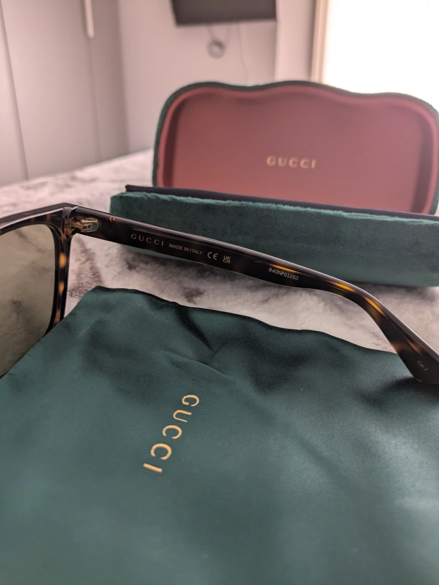Original Gucci sunglasses with luxurious emerald satin pouch and case. comes with authenticity card and warranty