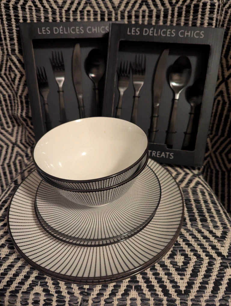 -2 flatware sets, 5 pieces in each, in black