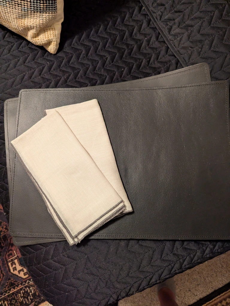 -2 black leather place mats