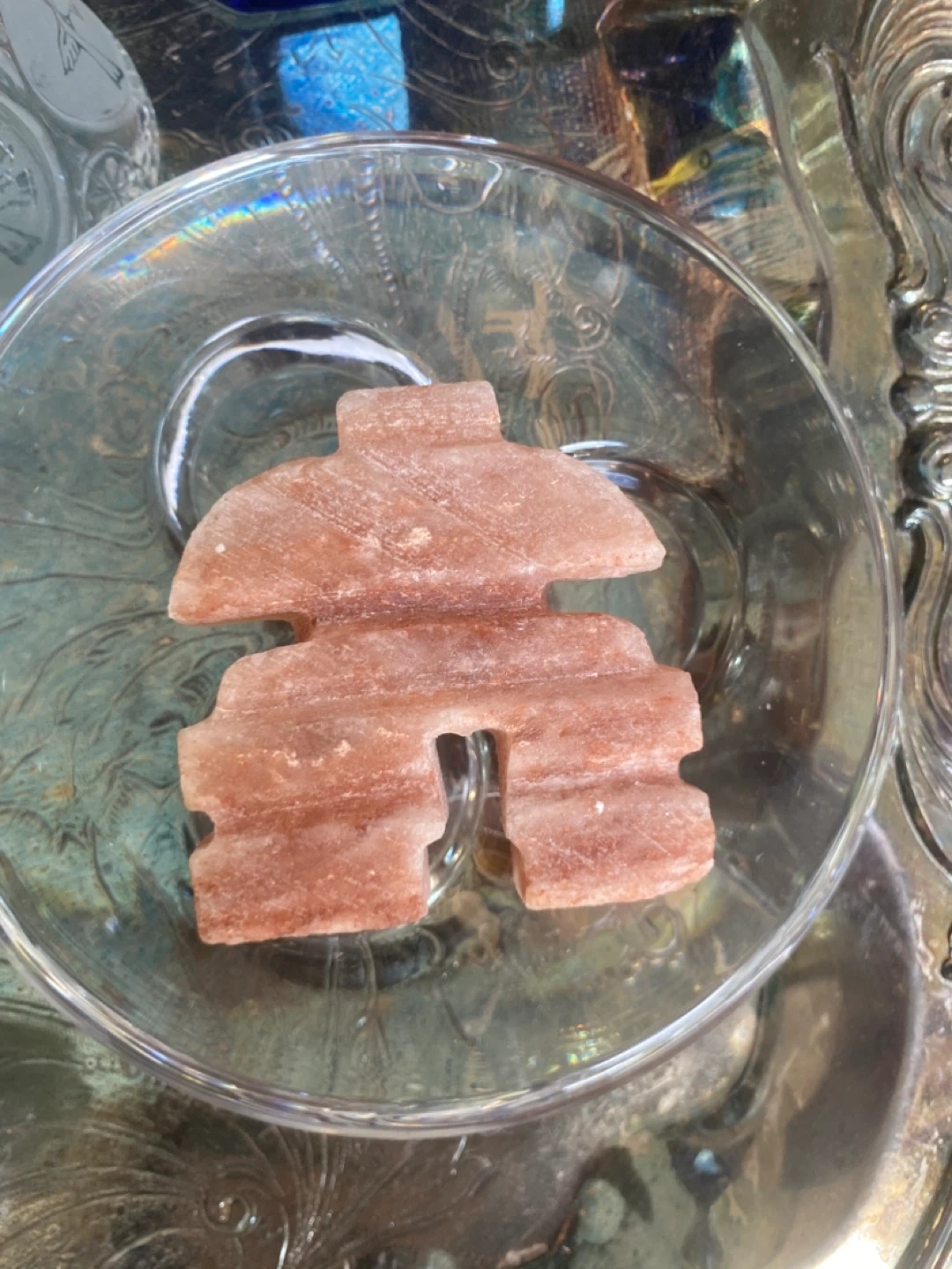 17A lovely Inukshuk carved from pink salt rock! This unique piece would make a great addition to any room, adding a touch of natural beauty and serenity to your space