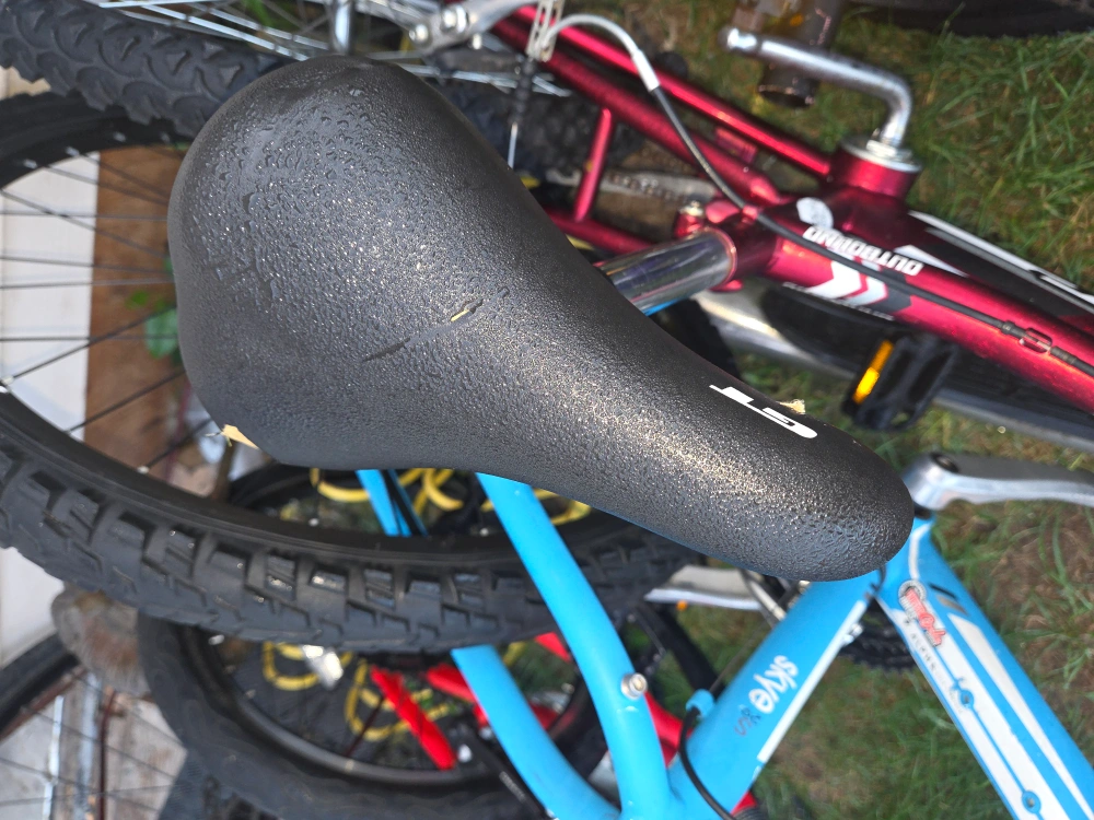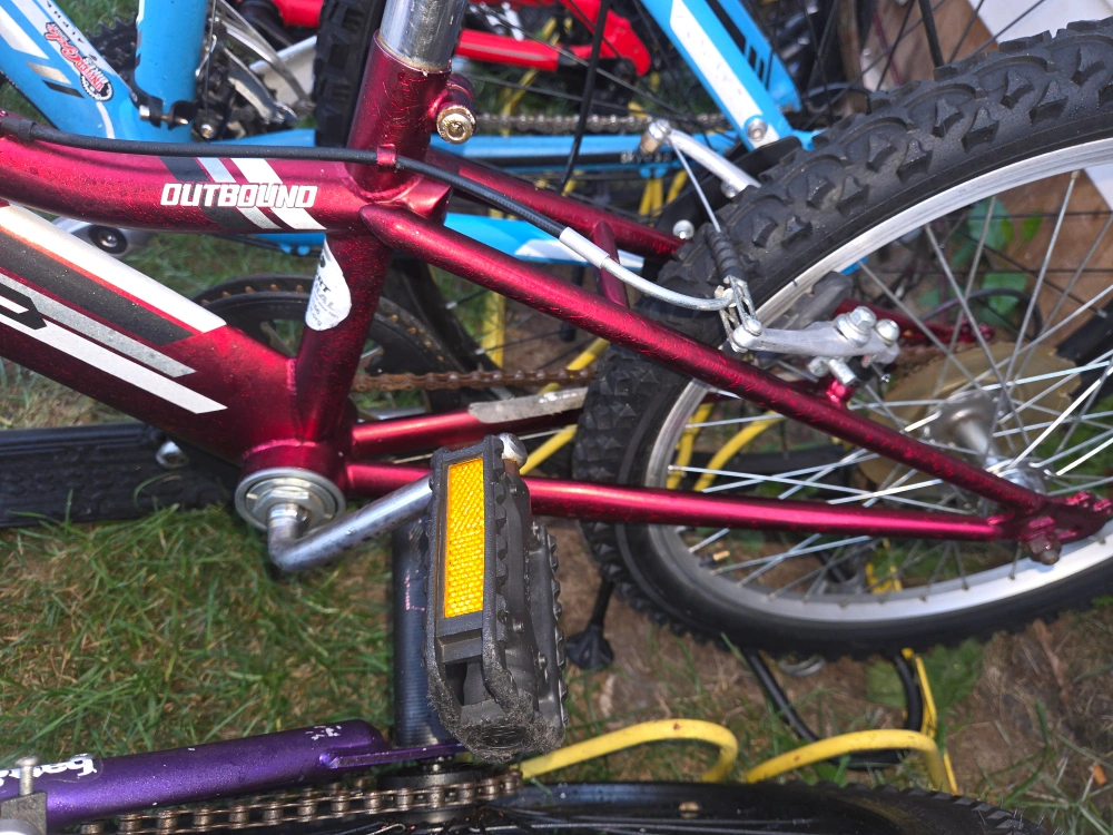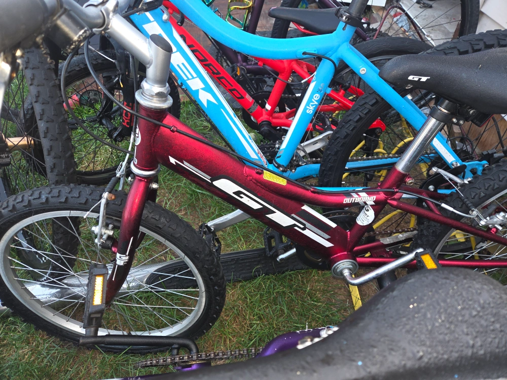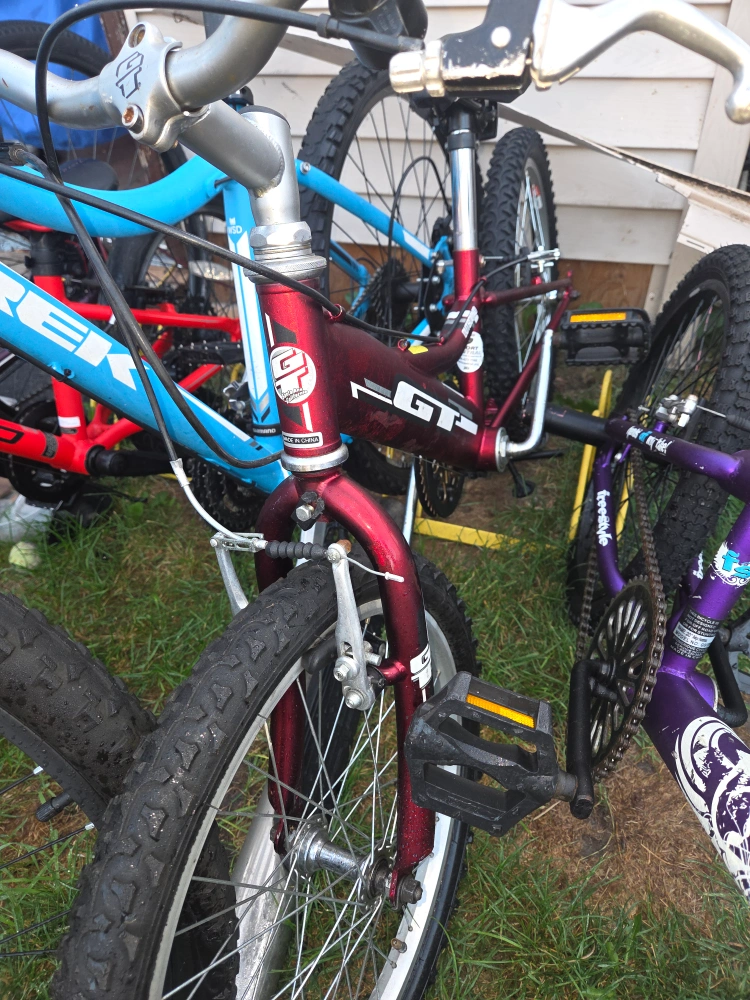 Selling a GT Outbound bike. It's in used condition and has some wear and tear, but it's still a great bike for getting around. The frame is red and white, and it has black tires.