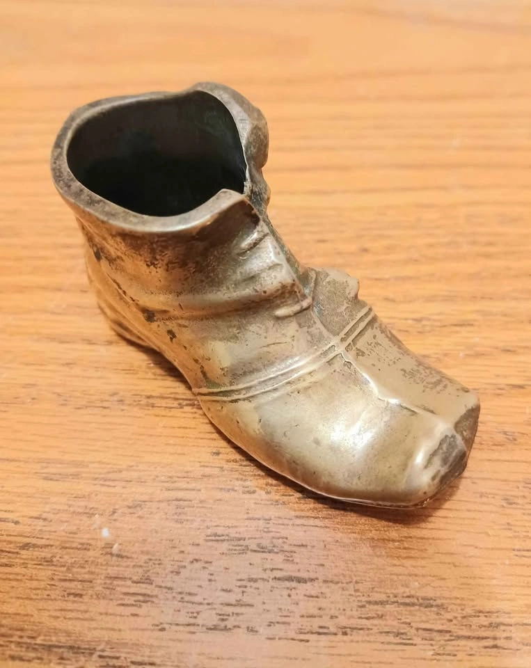 65Antique, Collectible, Stamped "Peerage England" Solid Brass Shoe Match Holder & Striker. Designed to hold matches, Hollow Center to Store Matches. It has a Textured Surface to Strike them Against, found on the Bottom or Along The Front Rim of the Toe. Very Good Condition. Please check out my other posts!