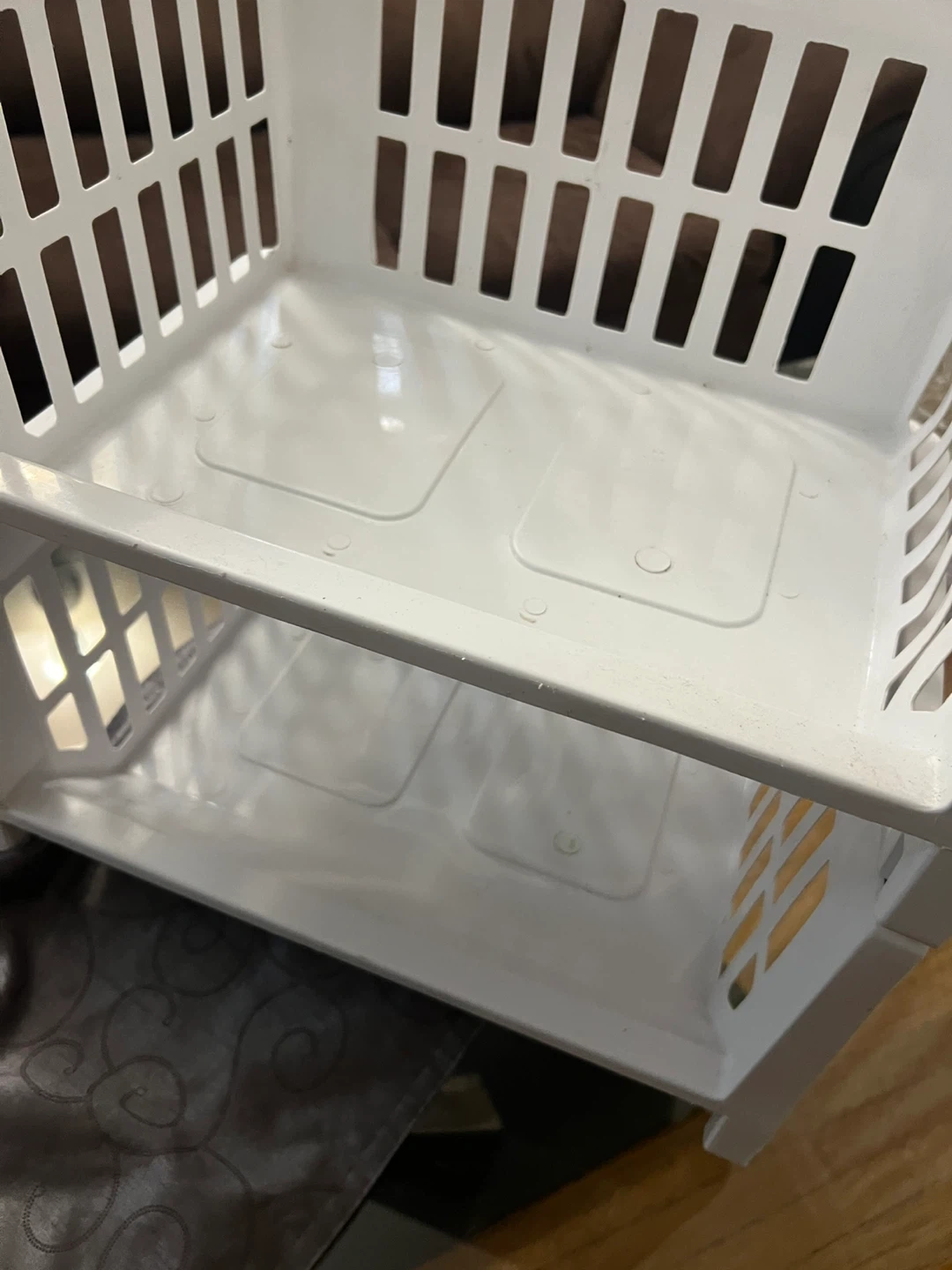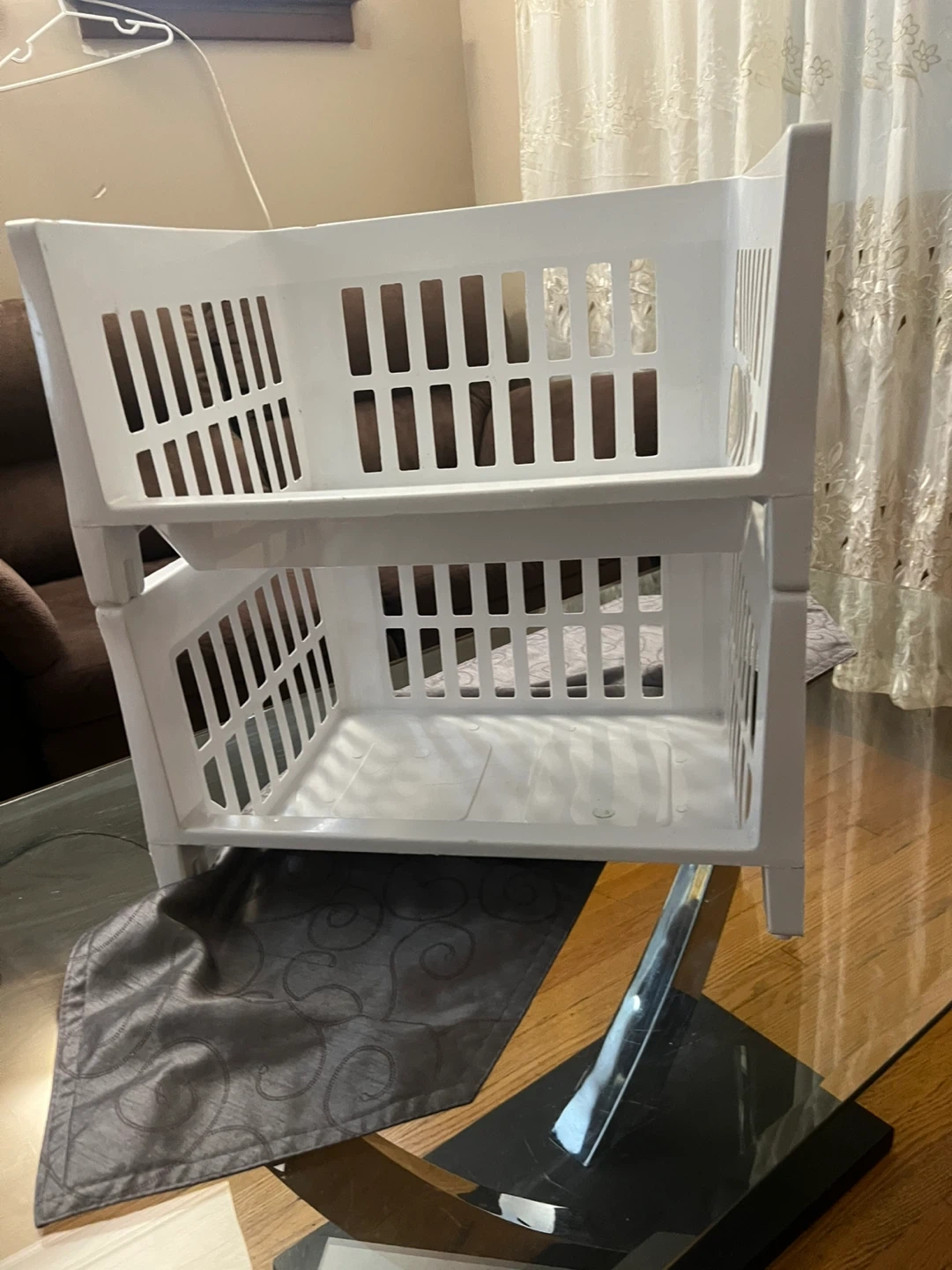 These white stackable storage baskets are in great condition and ready to help you organize your space! They're perfect for decluttering any room in your home, from the closet to the bathroom. Easy to assemble and super handy!