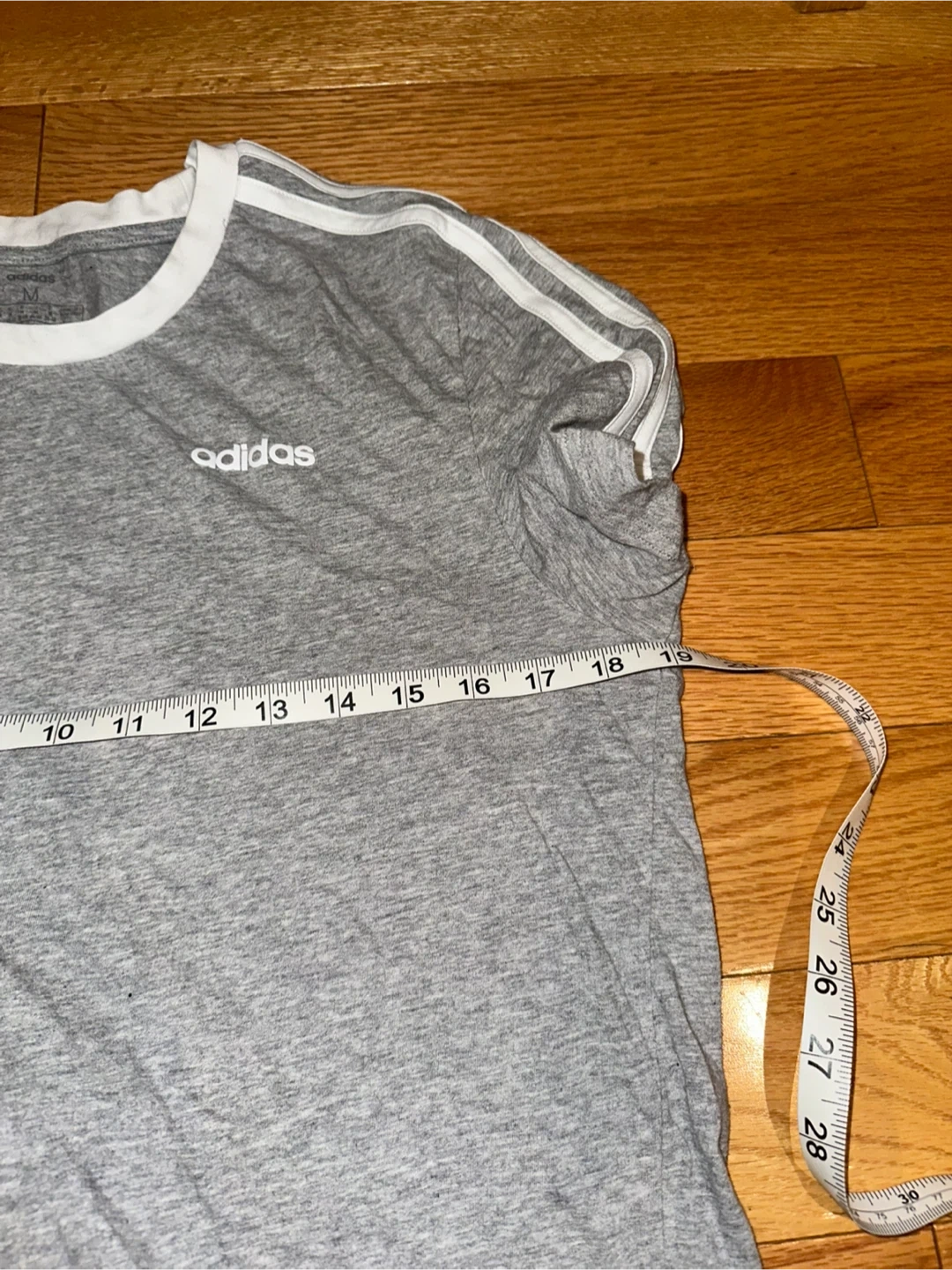 The shirt measures approximately 18 inches across and 28 inches in length. Great for casual wear or workouts! Medium women’s