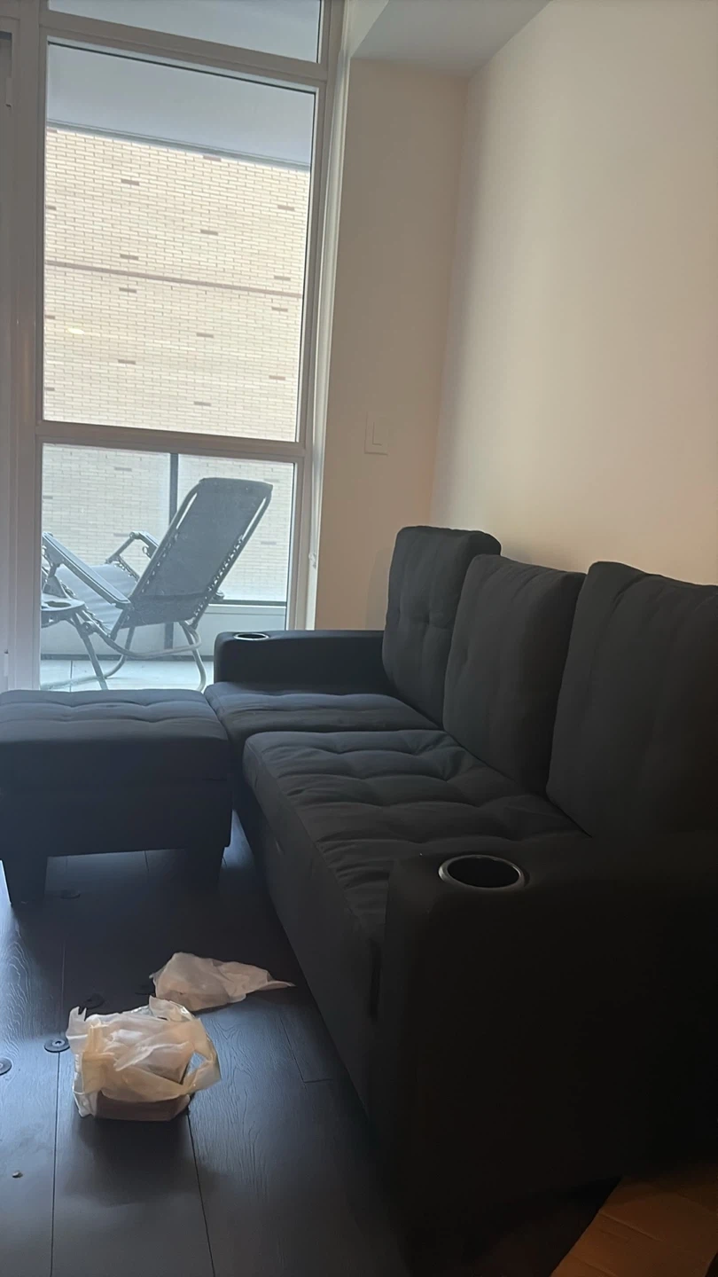 70Got a brand new couch very recently it’s a black couch with a movable chaise. Day after receiving it I was asked to relocate to a different city. Put it together once and had to close it up immediately. Never used. Need gone ASAP