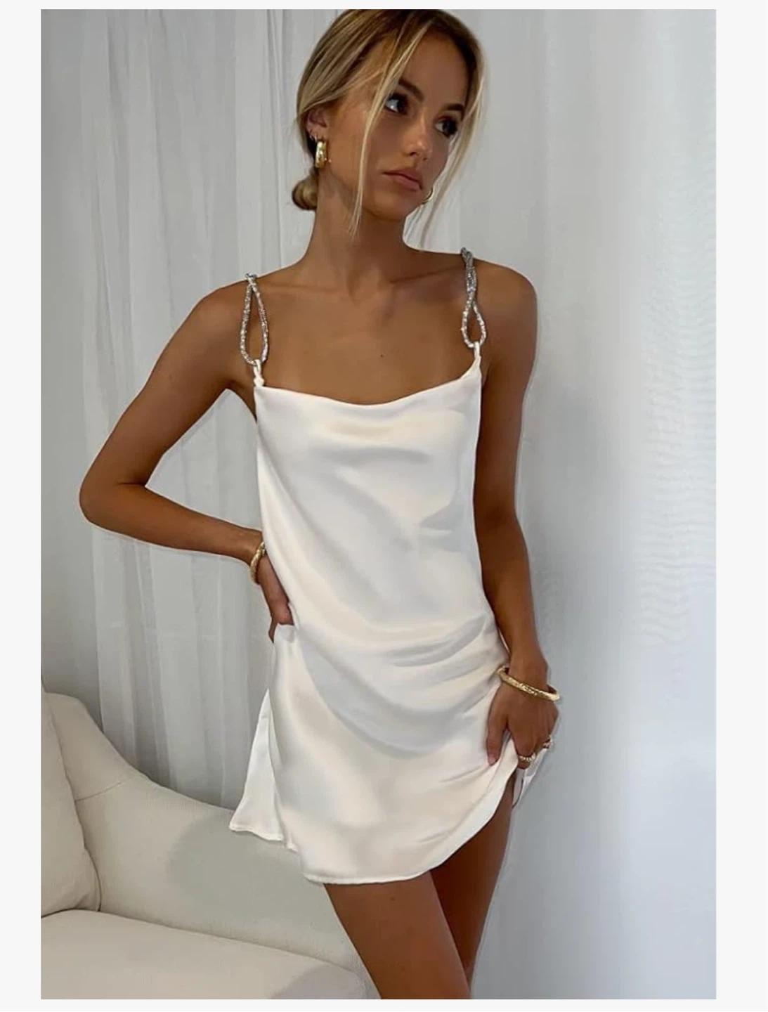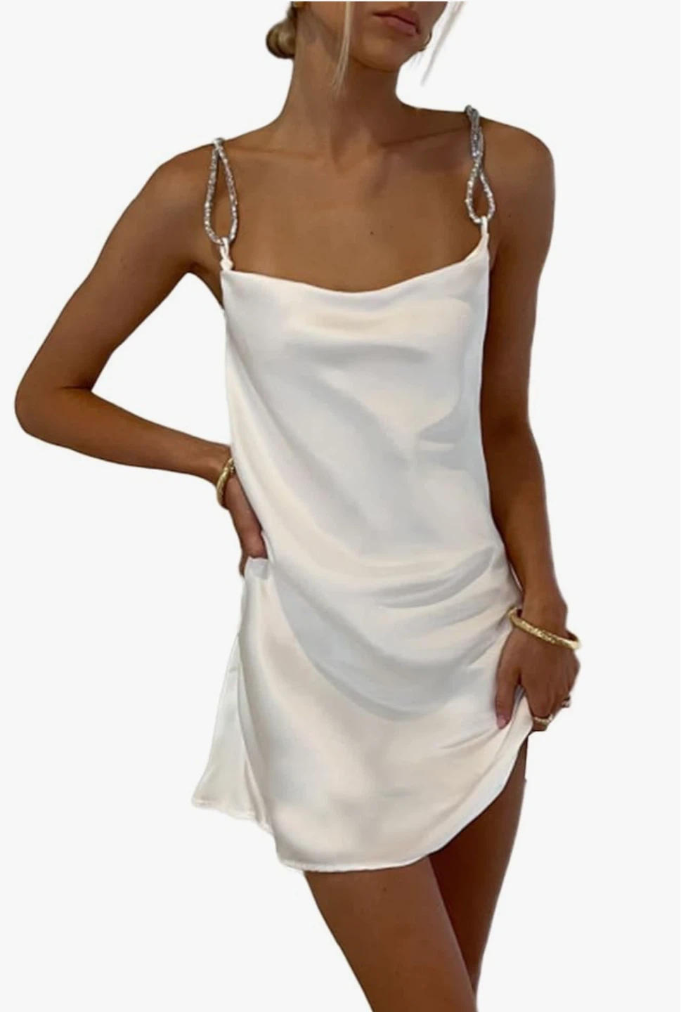 White Satin Cocktail Mini Dress