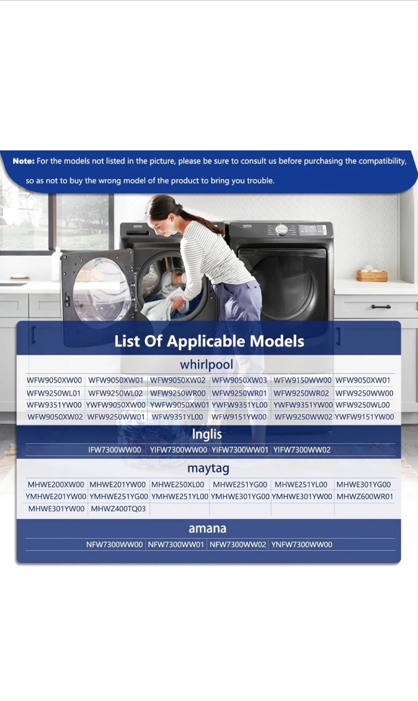 It is compatible with Whirlpool, Maytag, and Amana washing machines.