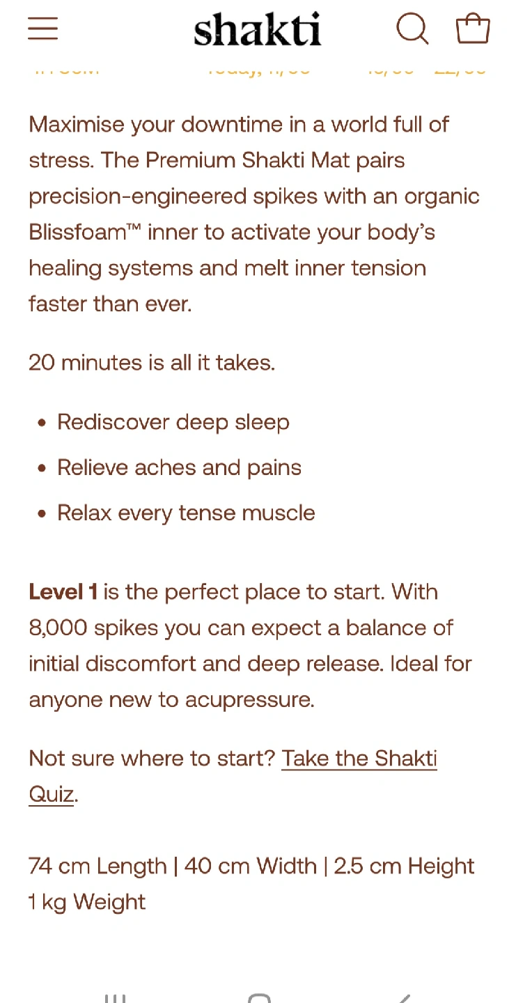 I'm selling a Shakti Mat, an acupressure mat designed to help you relax and relieve tension. Just 20 minutes a day can help you rediscover deep sleep, relieve aches and pains, and relax tense muscles.