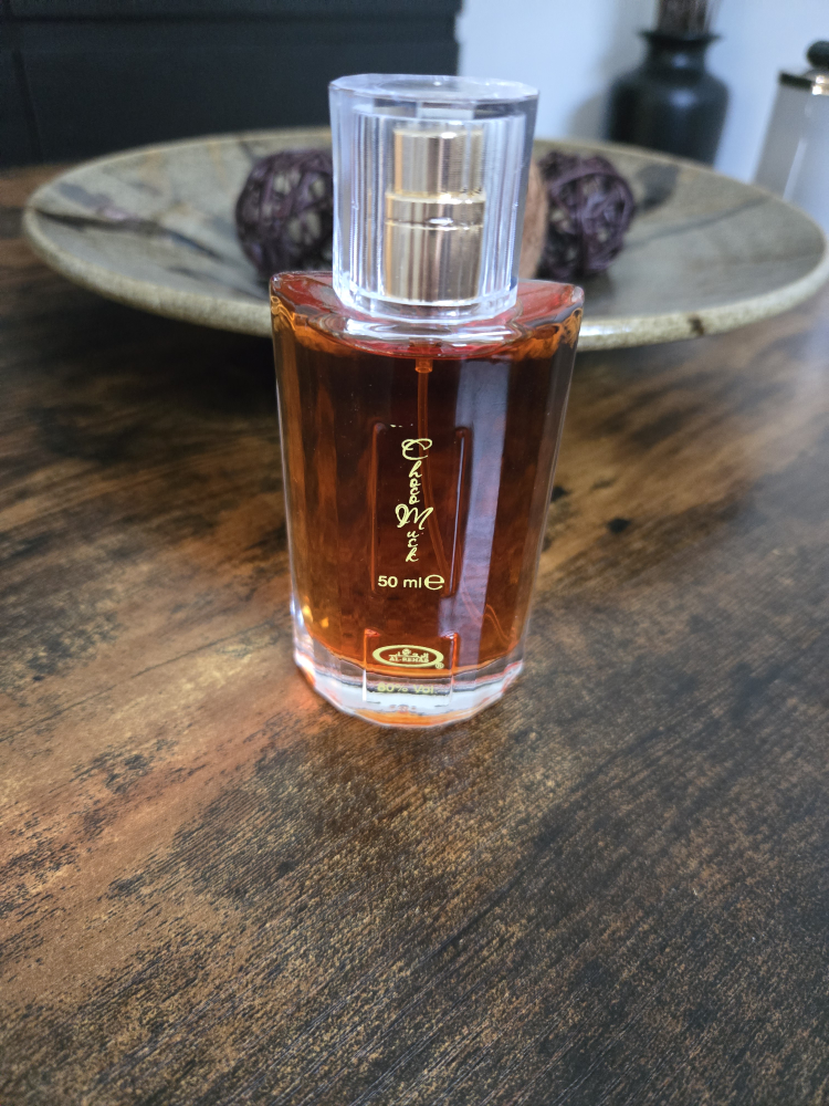Selling a bottle of Al-Rehab Choco Musk perfume. It's an eau de parfum natural spray and contains 50ml. 99.9% full. Smells like milk chocolate.