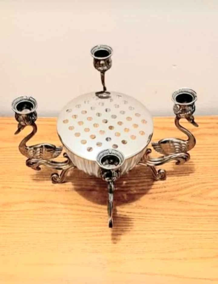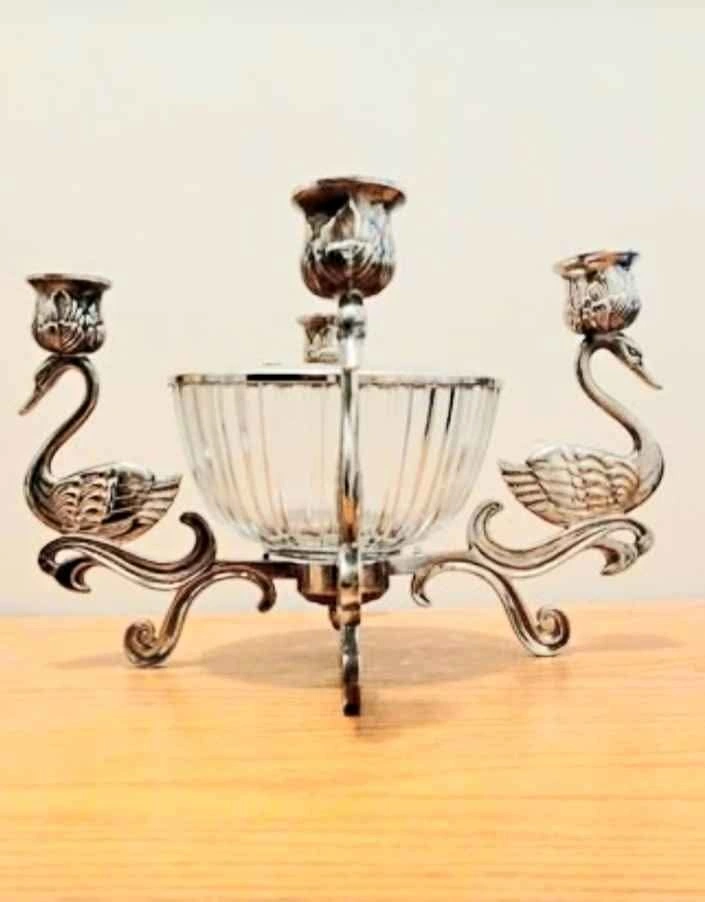 Centerpiece Silver Plated 4 Swan Candelabra & Flower Frog
