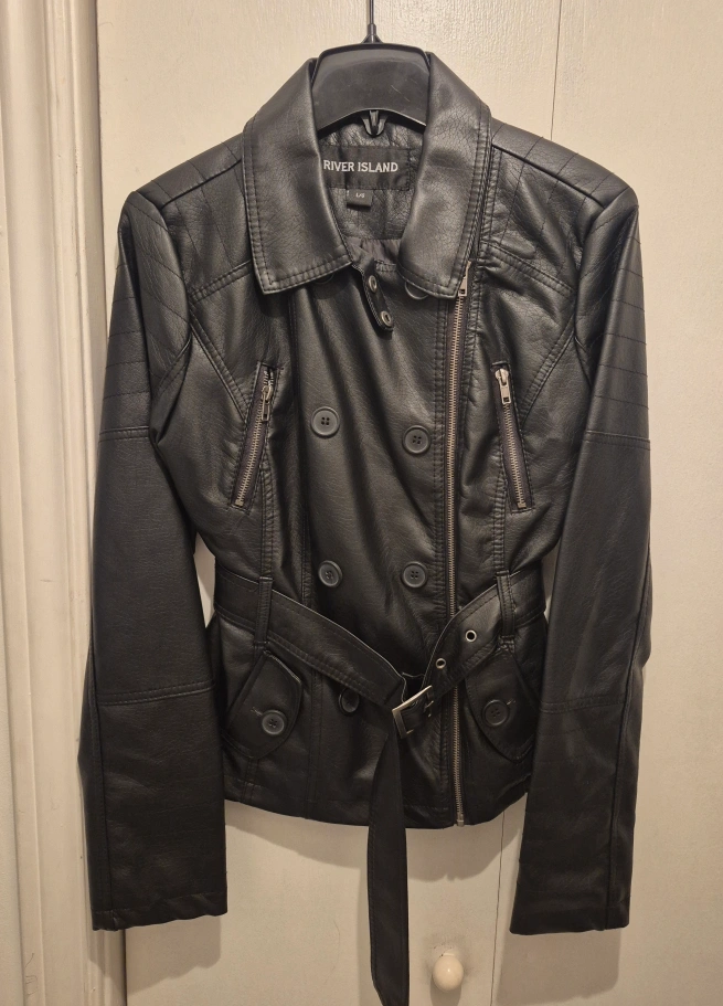 Used in like NEW condition. Size Large Selling a River Island black faux leather woman's jacket in size L/G. It's in great condition and features a stylish design with a belt. Perfect for adding a bit of edge to any outfit! * Pickup in Woodbridge at Pinevalley and Highway 7 area * * Address will be given ONLY to serious buyers prior to pickup * * Shipping is available at buyer's expense * * Cash or e-transfer * * Holds are welcome ONLY if e-transfer payment is sent prior to pick up & then you can pick up at your earliest convenience *