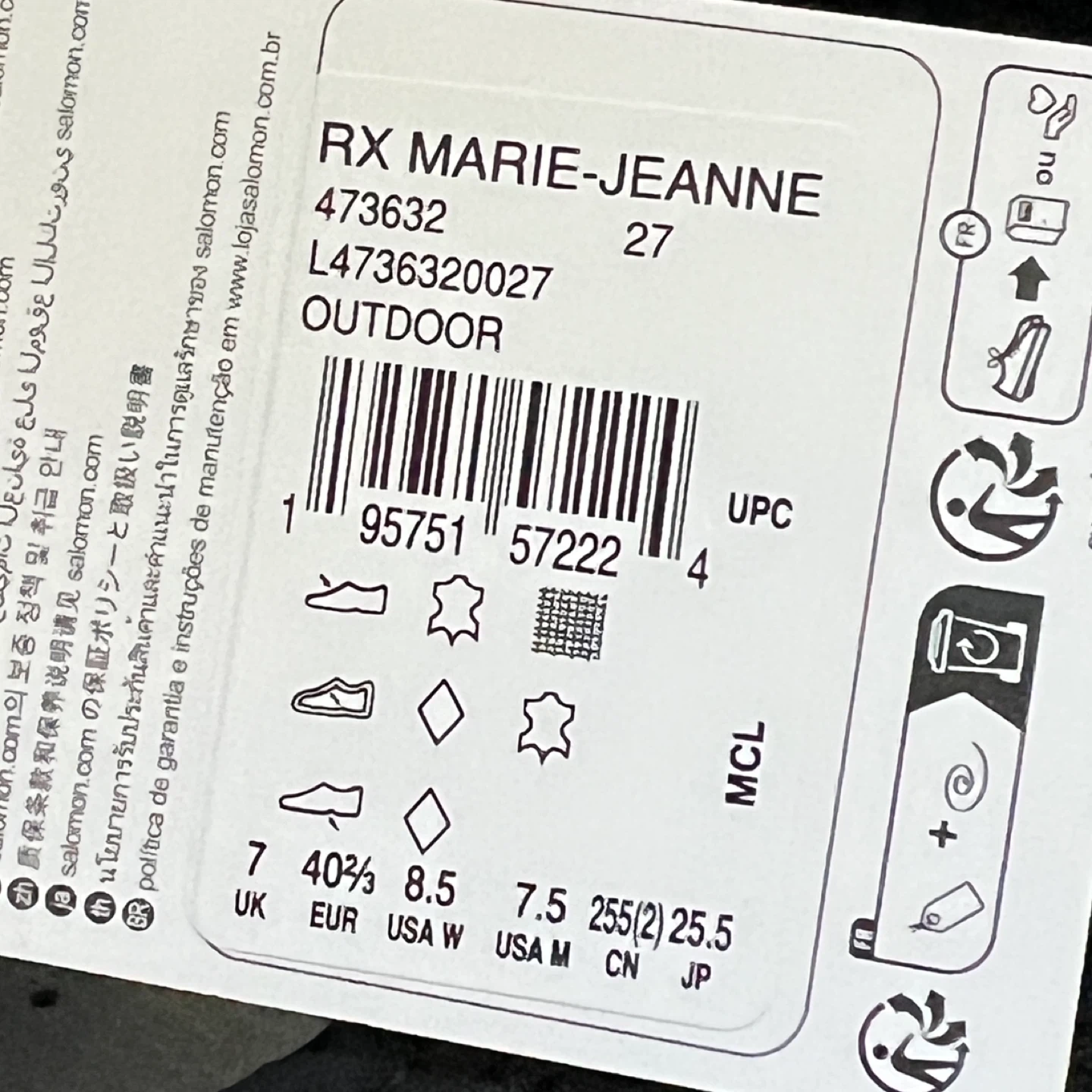 • Size: US Women’s 8.5 / Men’s 7.5 / 255