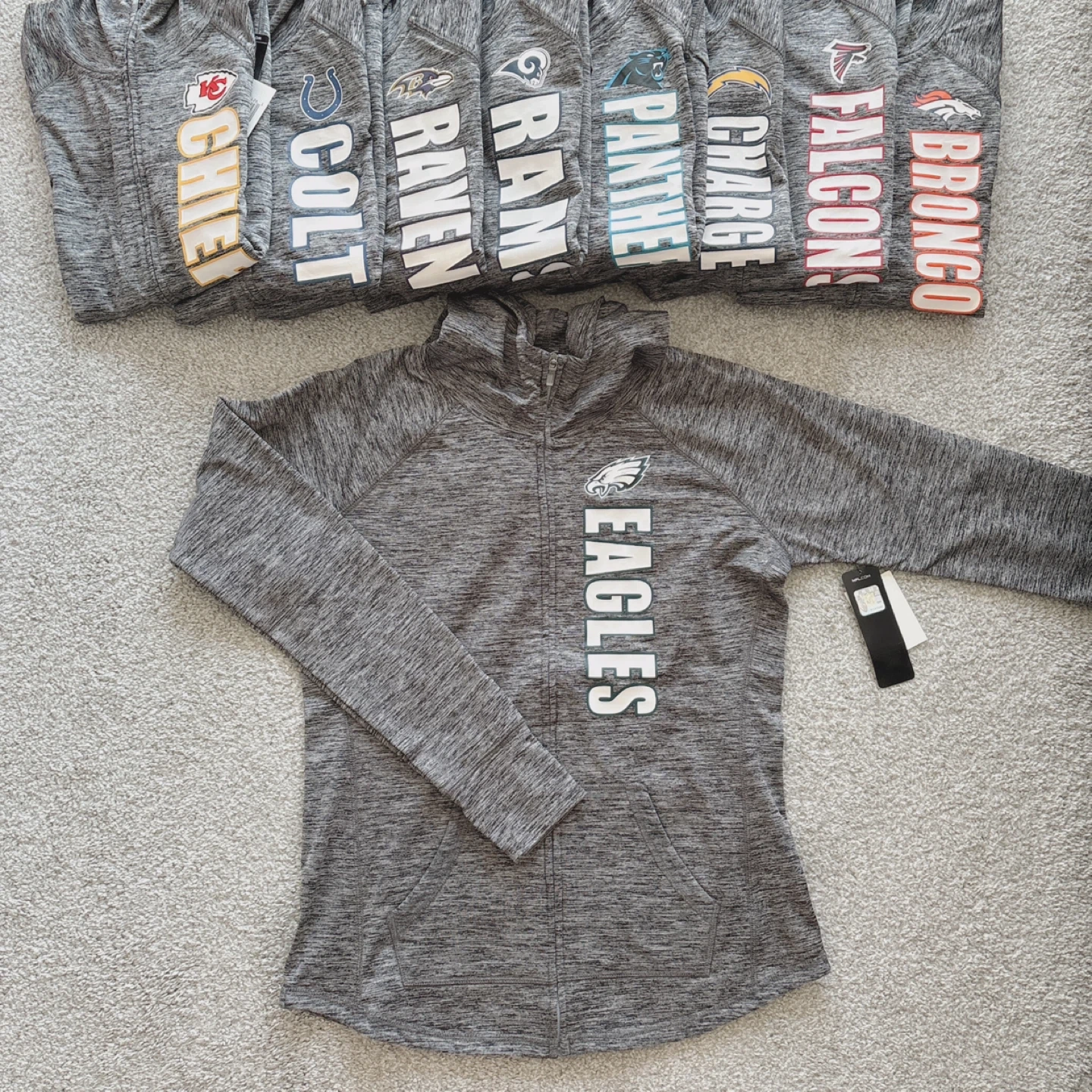103Officially licensed NFL Football team women’s zip up hoodie. Brand new with tags. Retails for $110 plus tax. Asking $50 each - Los Angeles Rams, size M - Los Angeles Chargers, size M - Atlanta Falcons, size M - Philadelphia Eagles, size M - SOLD - Denver Broncos, size M - Baltimore Ravens, size M - Carolina Panthers, size M - Kansas City Chiefs, size S - Indianapolis Colts, size M Pick up in Rockland Park NW, near Home Depot on Nose Hill Dr