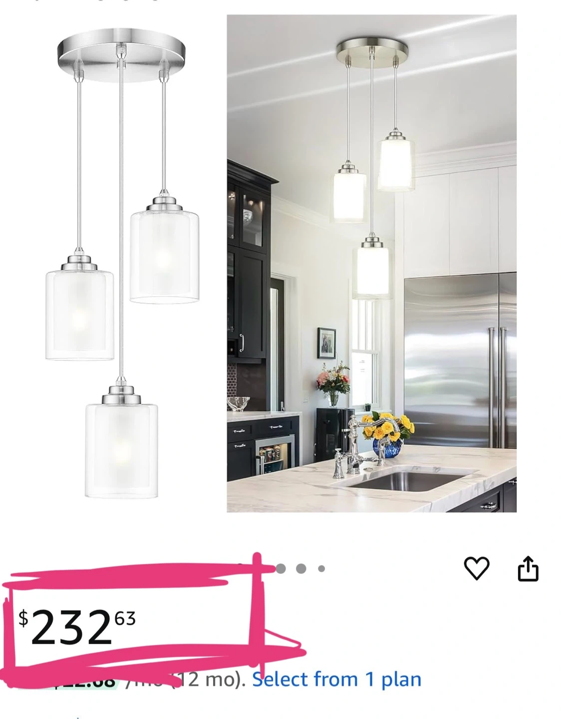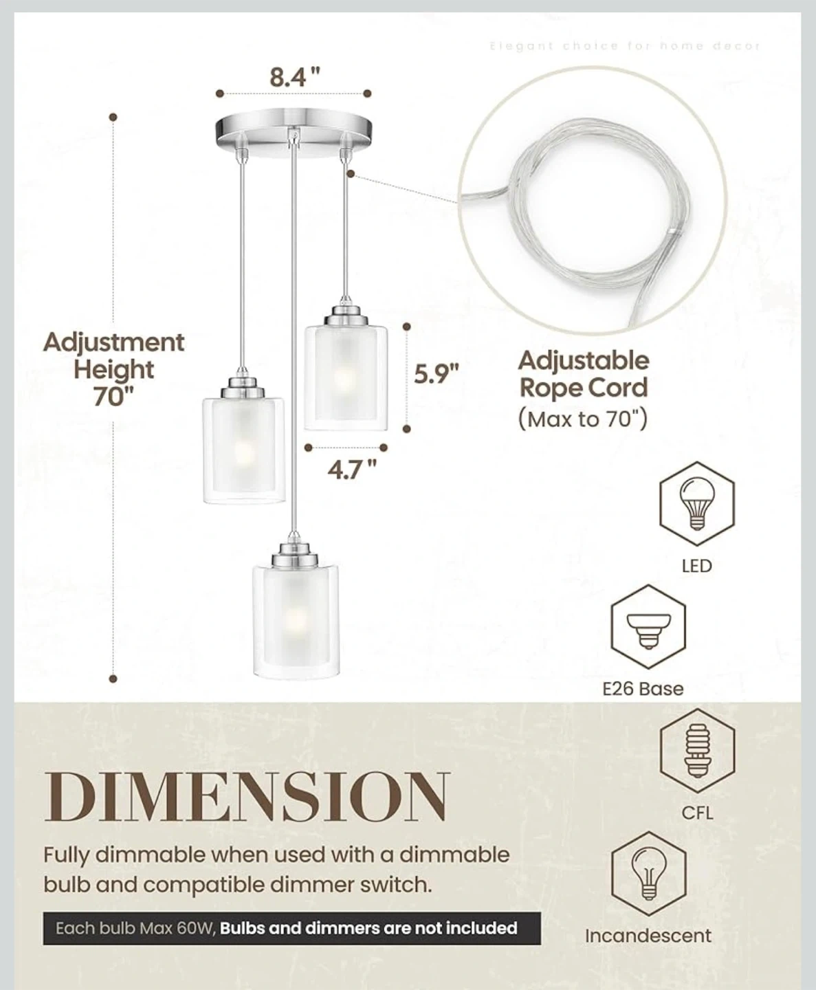 ✨ Modern 3-Light Glass Pendant ✨ Set of 2 or Buy Separately