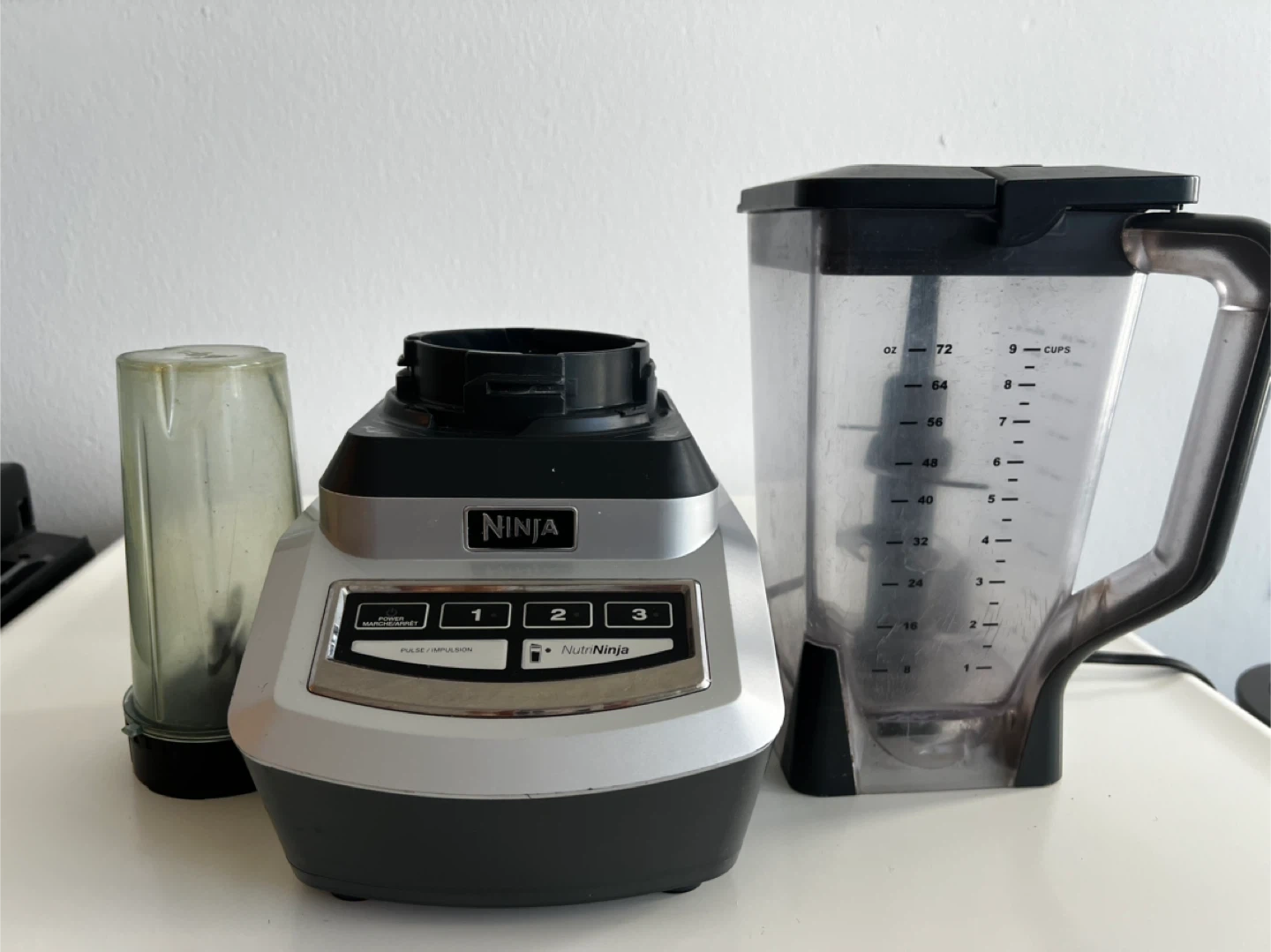 Selling a Ninja Nutri Ninja blender. It comes with the blender base, a large pitcher, and a single-serve cup. Perfect for making smoothies and other blended drinks!