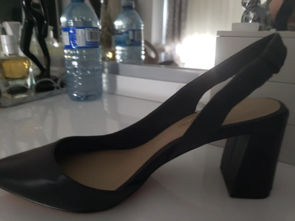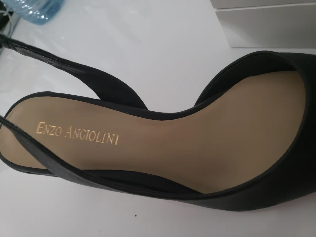 Classic black slingback heels by Enzo Angiolini! These heels feature a sleek design and a comfortable block heel, making them perfect for any occasion. They are in great condition and ready for a new home!