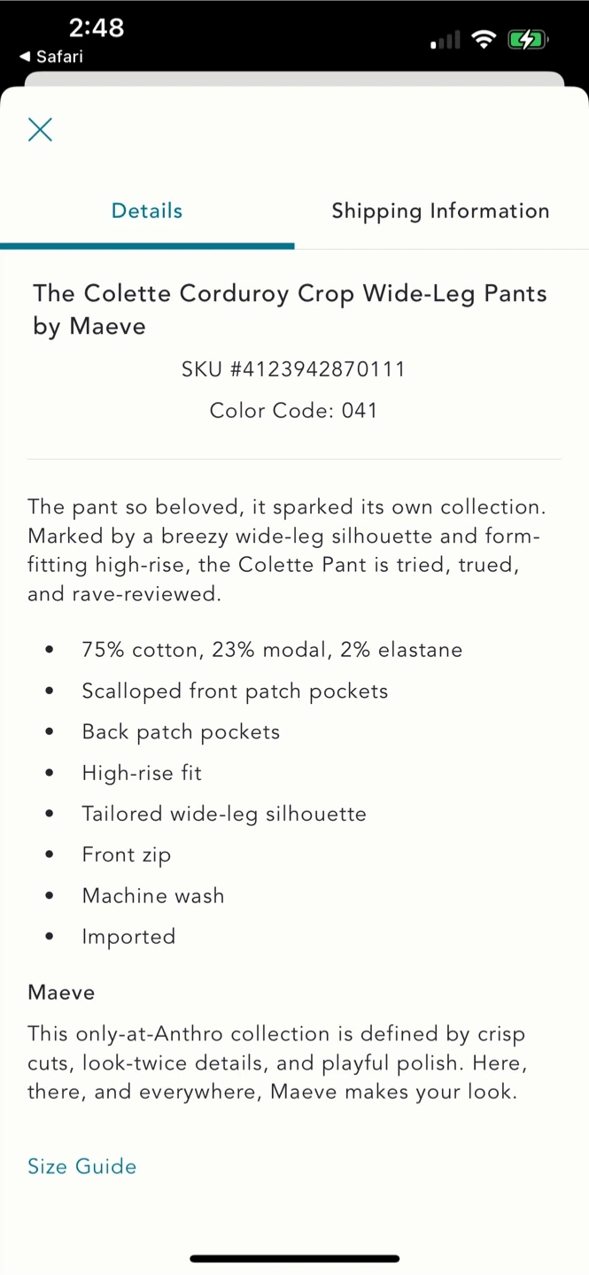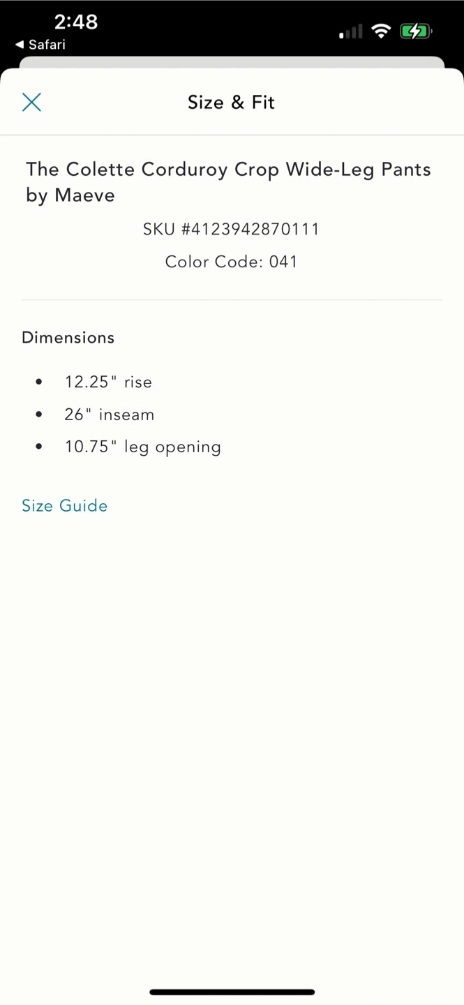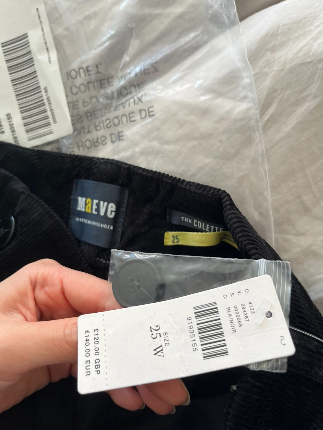 BNWT Anthropologie Colette Corduroy Crop Pants Black 25