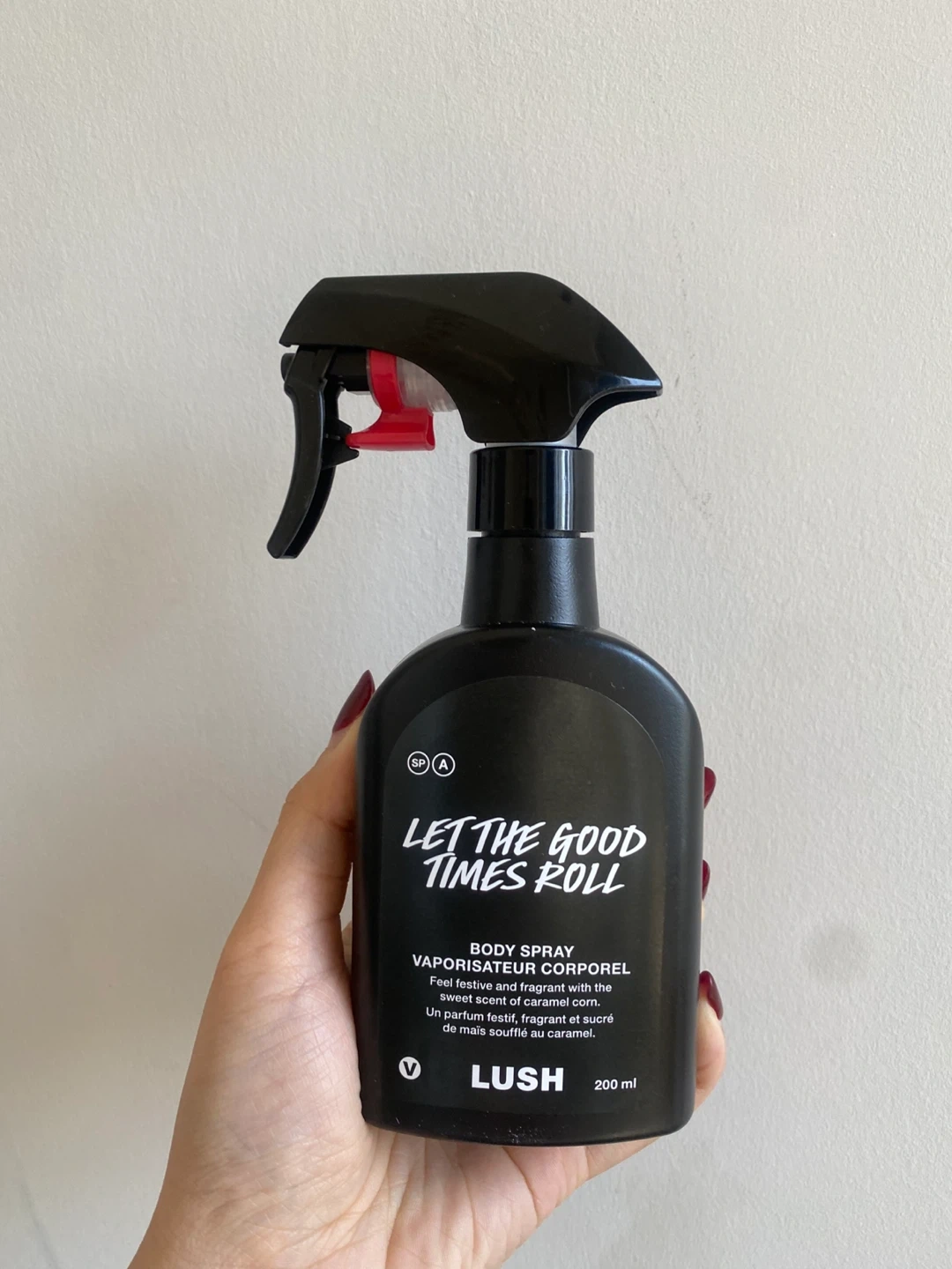 101Selling a Lush 'Let The Good Times Roll' body spray! It's a 200ml bottle and smells like sweet caramel corn. Perfect for a festive and fragrant vibe! Sprayed only once, just not a good fit for me! Bought it recently, technically brand new condition. Lost receipt so I can’t return. Retail $44+tax