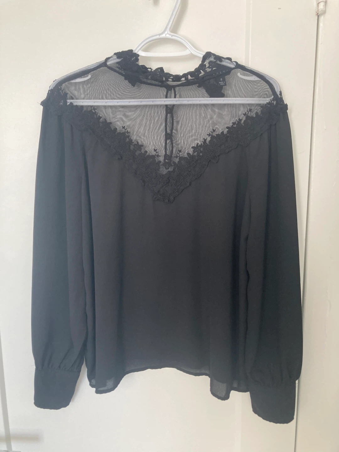1 / 11 / 1Buy & SellBlack Sheer Lace Blouse Size 8Black Sheer Lace Blouse Size 8$40Selling a lovely black blouse with sheer lace detailing. It's a size 8 and in great condition! Perfect for dressing up or downSize8WHERE TO MEETCheck LocationView MapSELLERverifiedMariahParkway Forest23216 reviews0 chats·0 favorites·5 viewsSEND CHAT TO SELLERHi Mariah! I’m interested in your listing.Hi Mariah! I’m interested in your listing.Get the Karrot app to chatSign In to chat