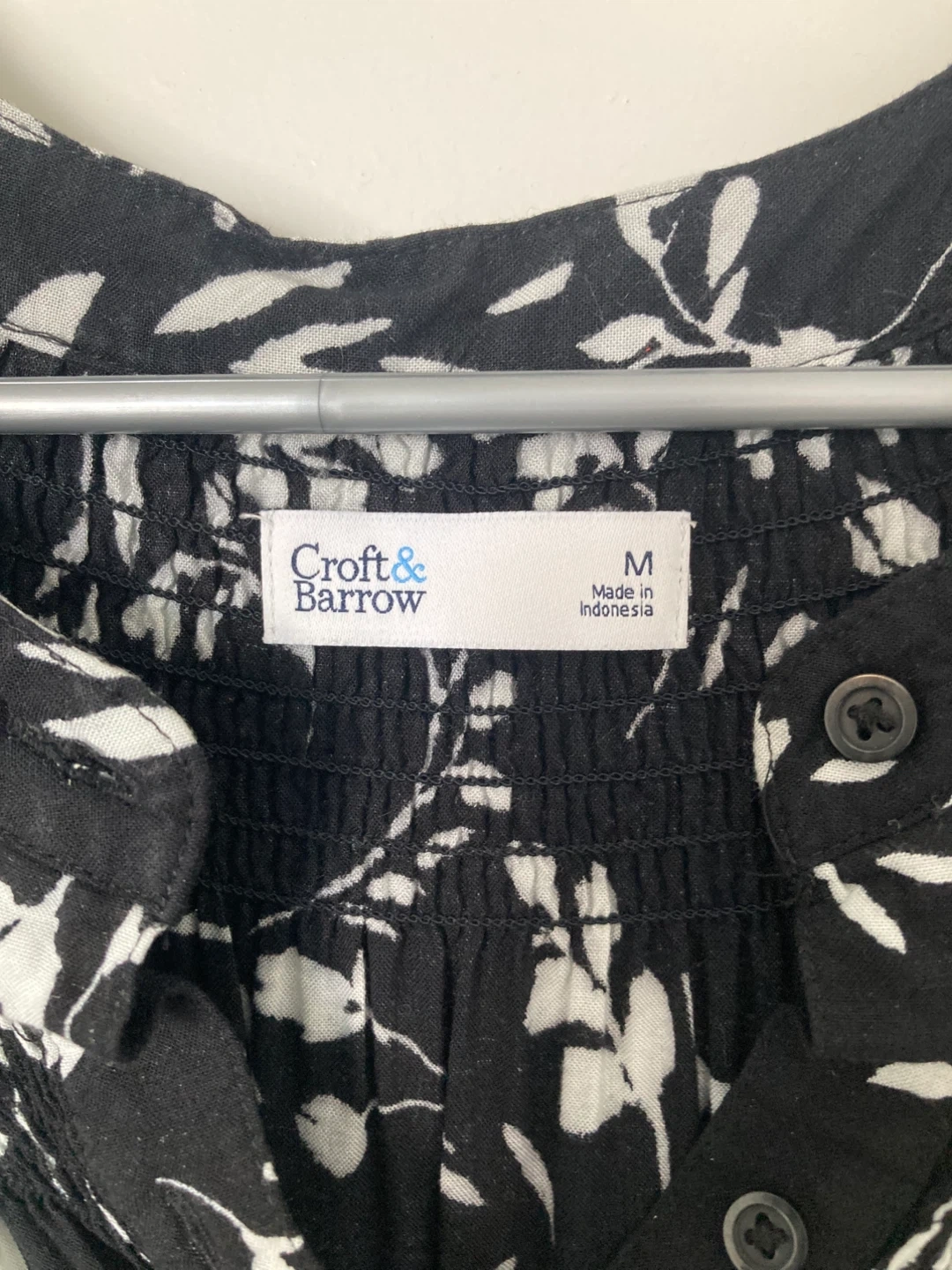 Selling a cute Croft & Barrow dress with a black and white floral pattern. It's a size medium and in great condition! Perfect for a casual outing or dressing up for a special occasion