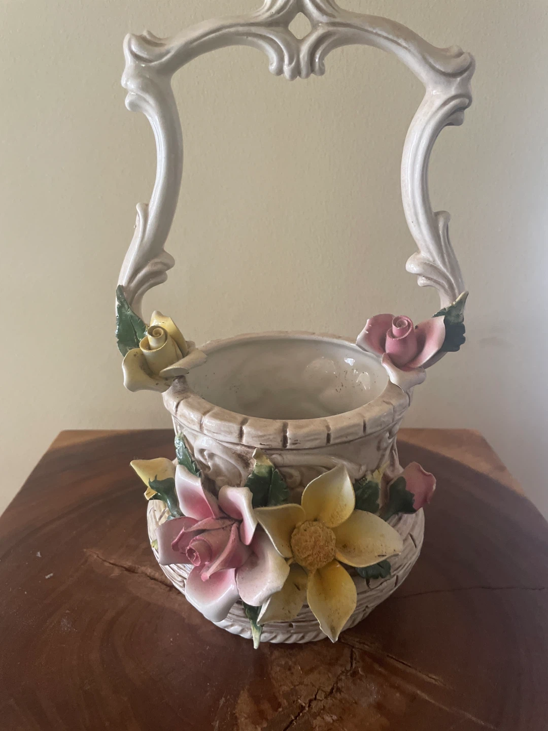 This is a beautiful Capodimonte floral basket. It's in great shape and would be a lovely addition to any room. Made in Italy!