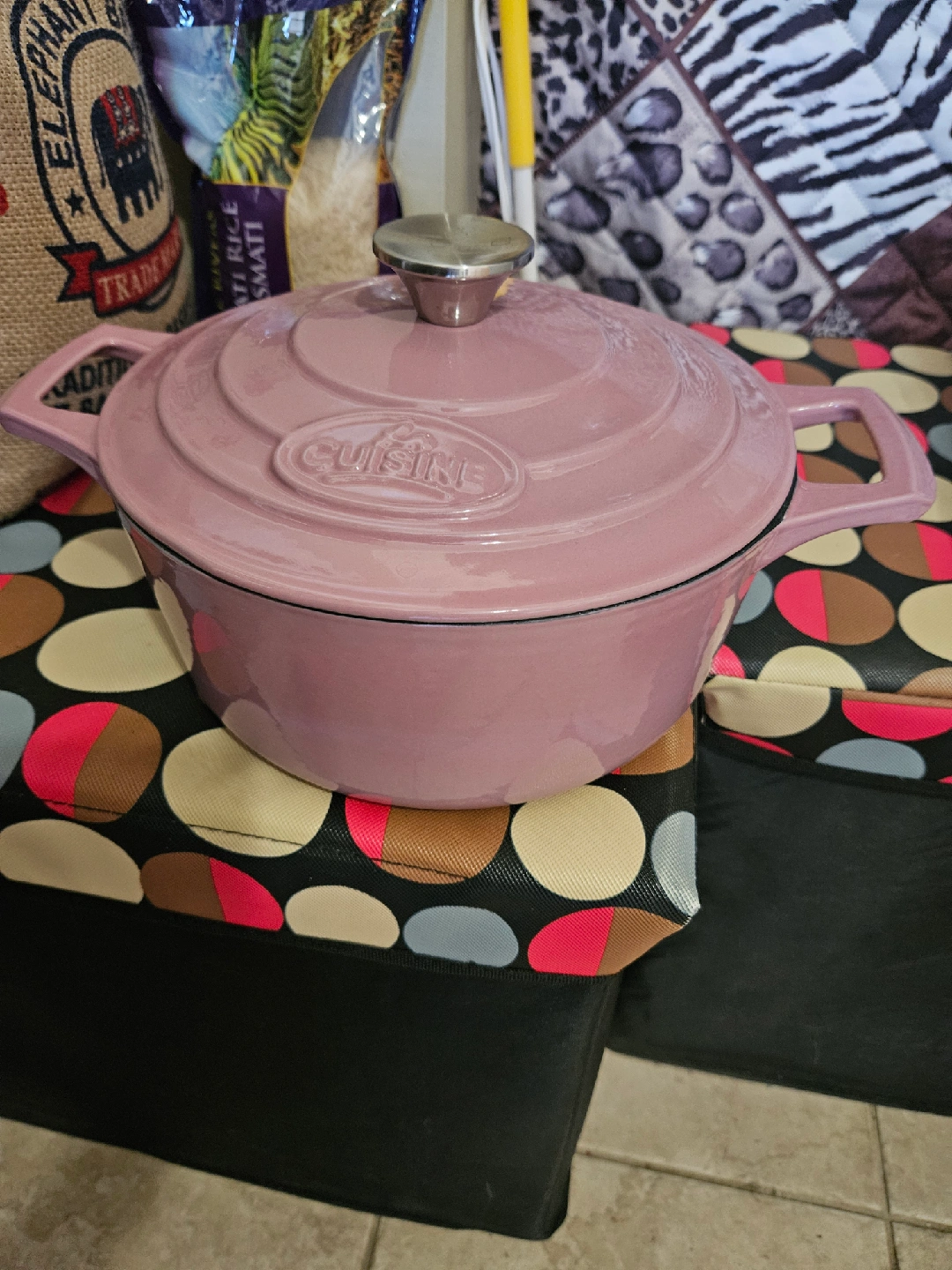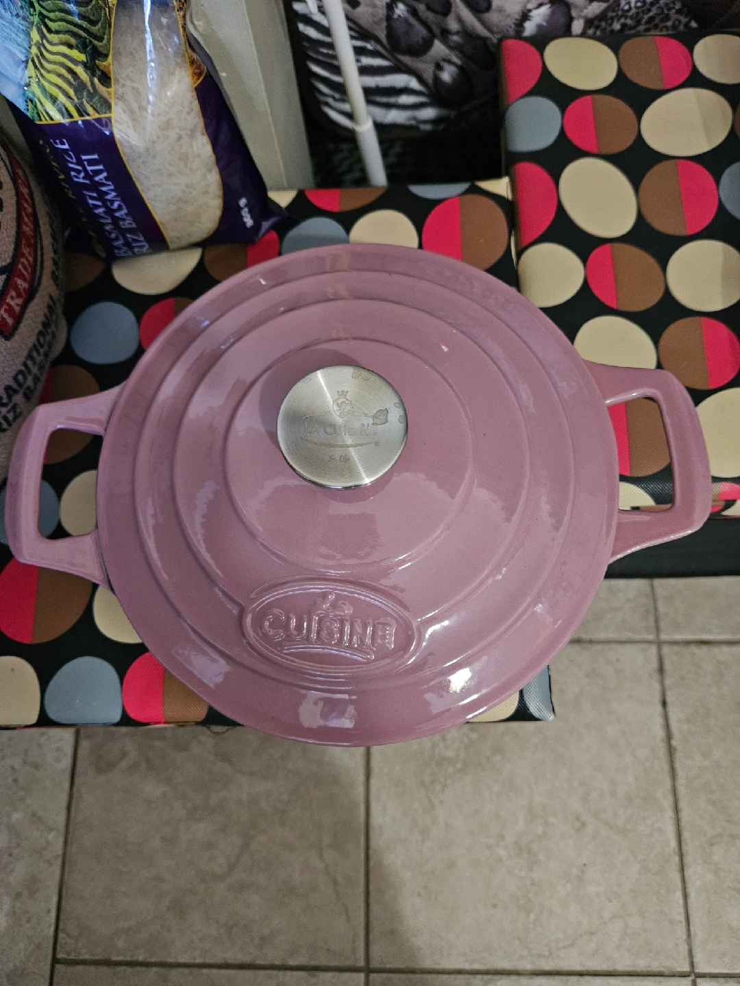 489Selling a lovely La Cuisine Dutch Oven in light pink. It's in great shape and ready for all your cooking needs. This pot is perfect for stews, soups, and roasts, and it looks beautiful on the stovetop or table. A great addition to any kitchen!