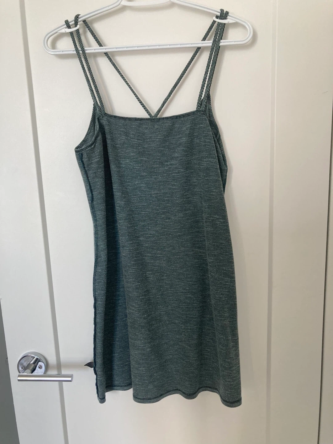 A cute green mini dress with a criss-cross back. Perfect for summer!