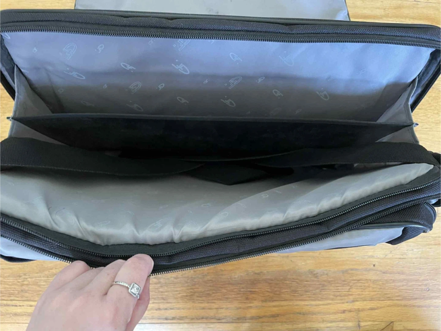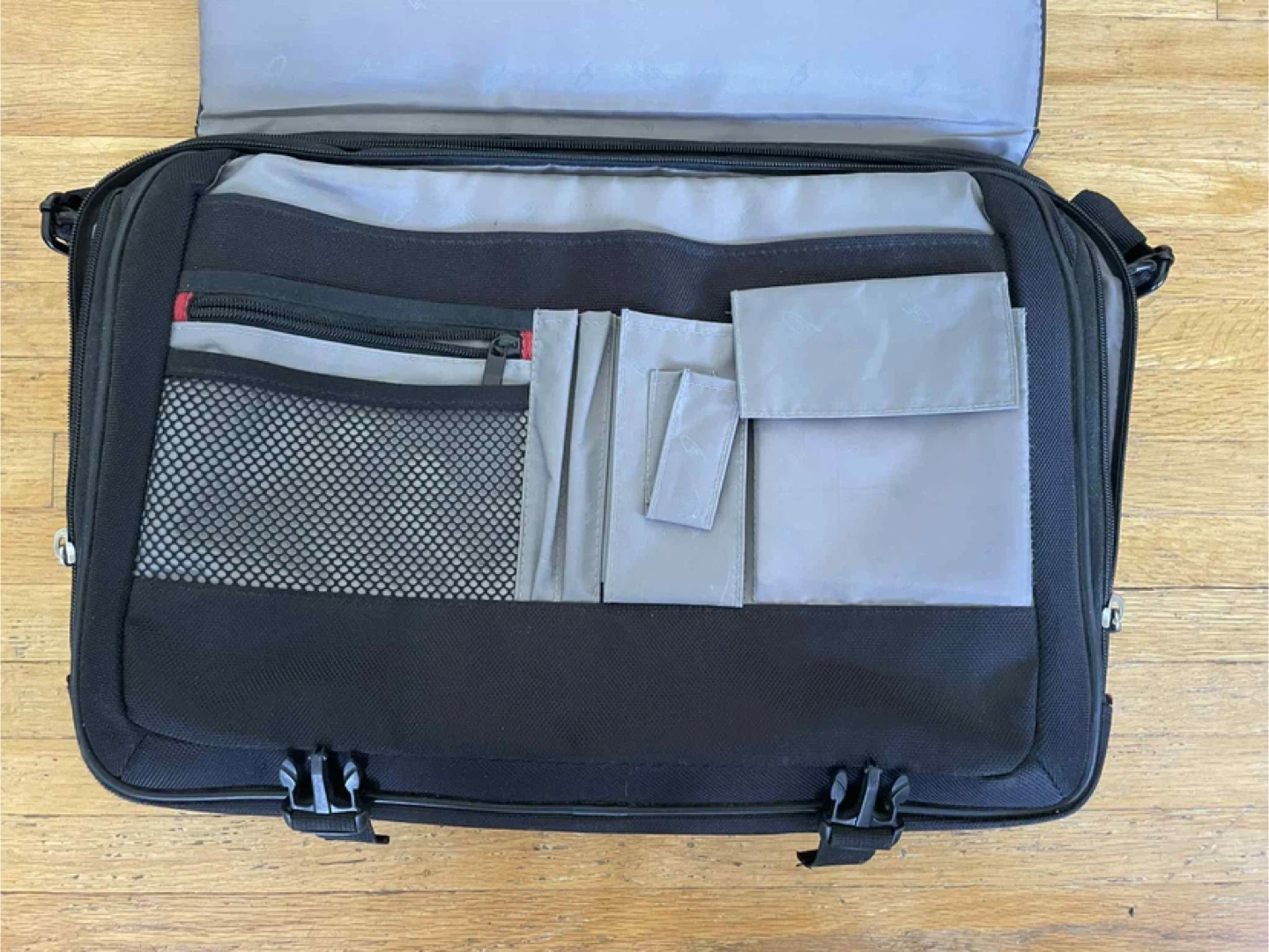 Over the shoulder briefcase type bag, perfect to carry a laptop, books, notepads etc lots of compartments and storage $10