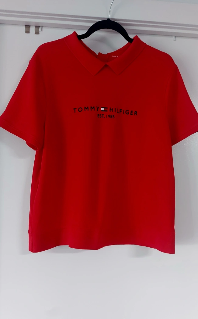 A vibrant women's red polo shirt from Tommy Hilfiger! It's in great shape and ready for a new home. Perfect for adding a pop of colour to your wardrobe