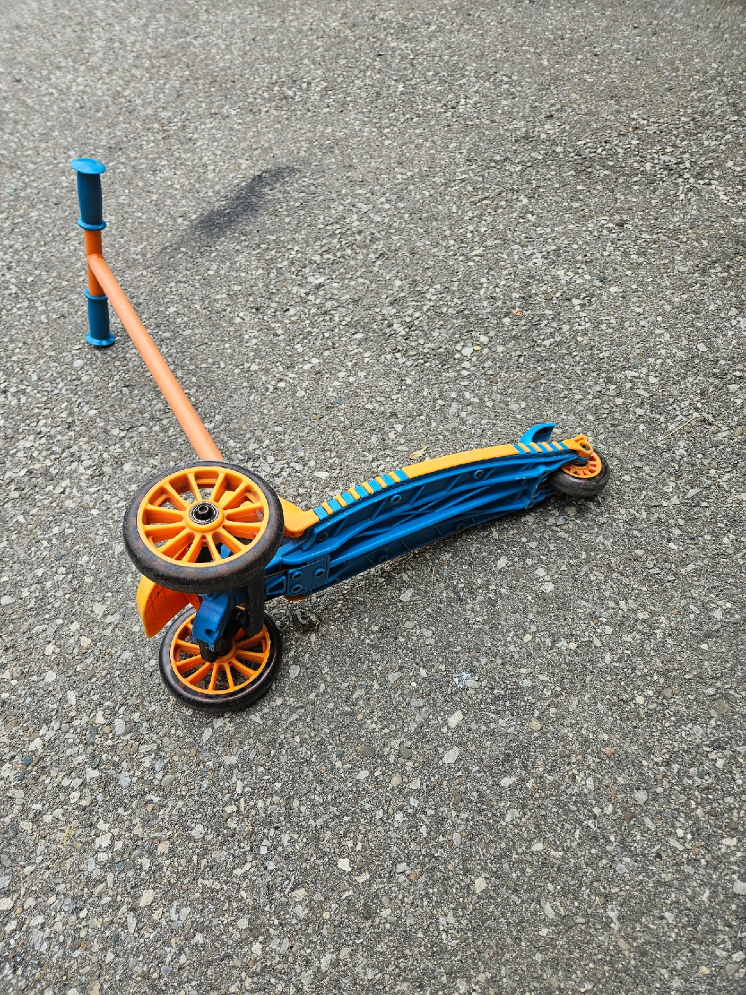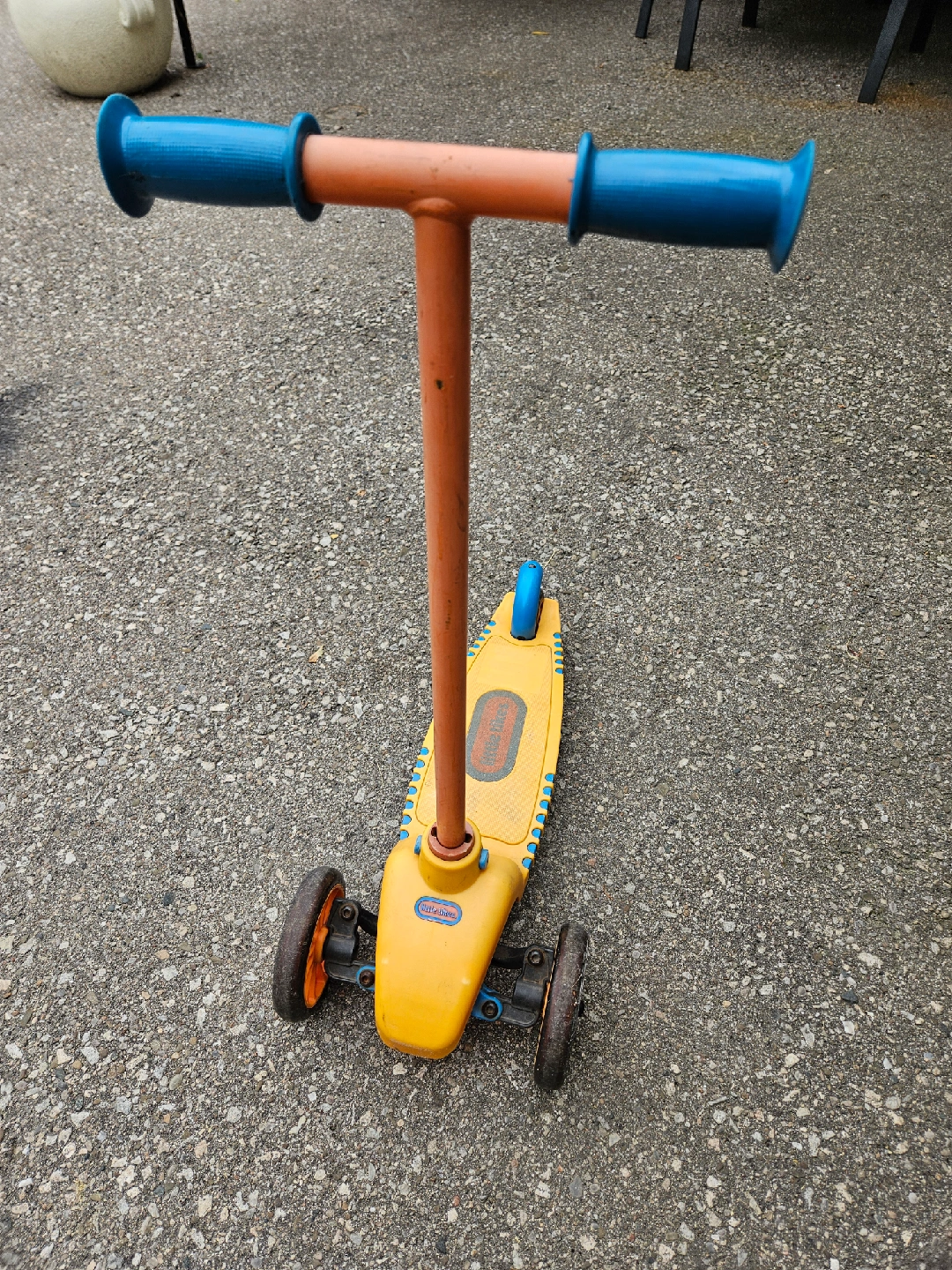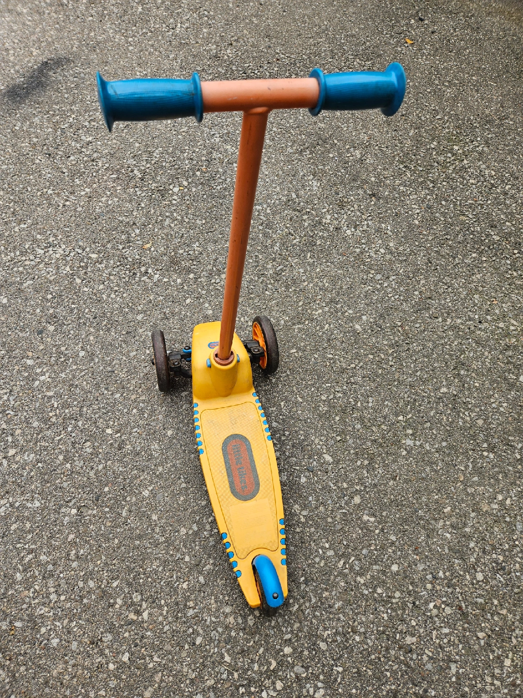 Selling a Little Tikes 3-wheel scooter in yellow and blue! It's perfect for little ones learning to scoot around. It has a sturdy design and is easy to use.
