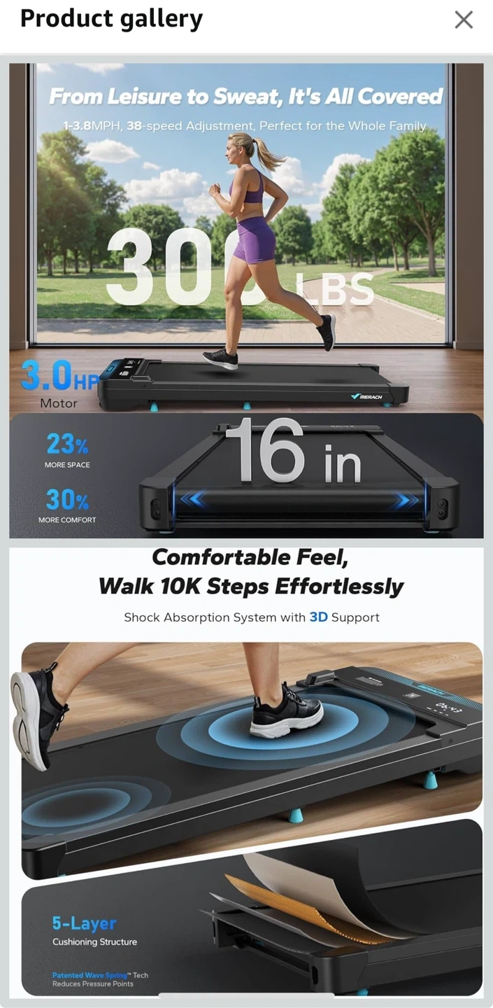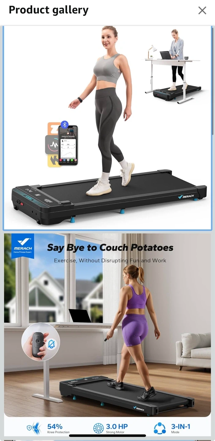 3062-in-1 Treadmill Walking Pad with Display Under Desk Treadmill for home & office Walking, Jogging & Running 2.5HP Treadmill Up to 320 pounds App Control High Quality Treadmills for Home No Assembly Required Saving Space Multifunctional Screen & Remote Control Supports different level of speed 0.6-3.8MPH NOTE: New in box