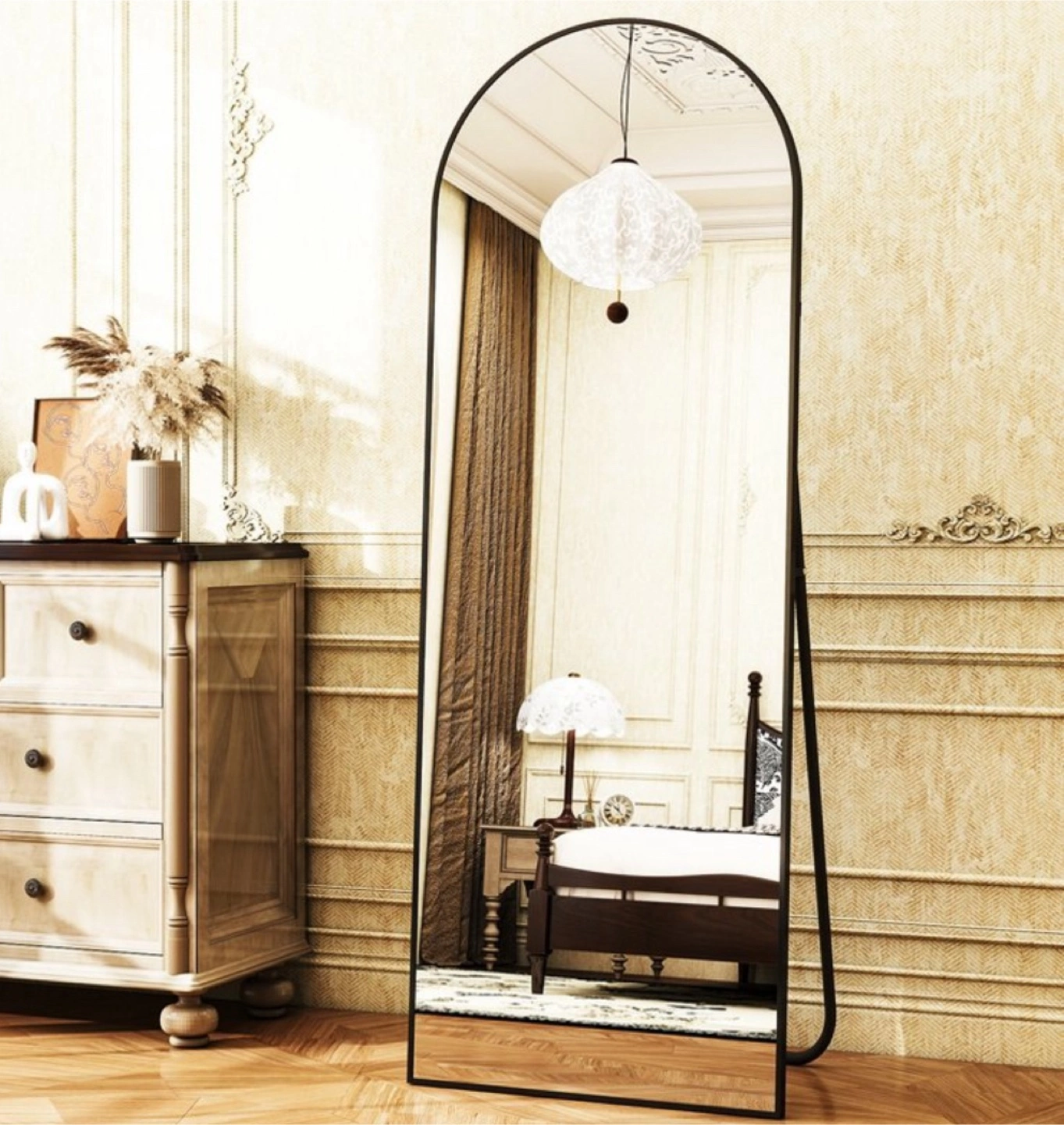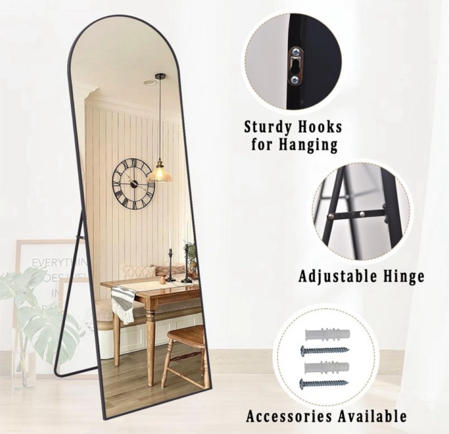 An additional metal arch frame Full Length Mirror( black metal frame). It's brand new condition still in package and ready to brighten up your space. The mirror stands 59 inches tall and features an explosion-proof glass for safety. Width is 16 inches. It has a stylish design that matches well with any house! Brand new in package. Pick up in queens Elmhust
