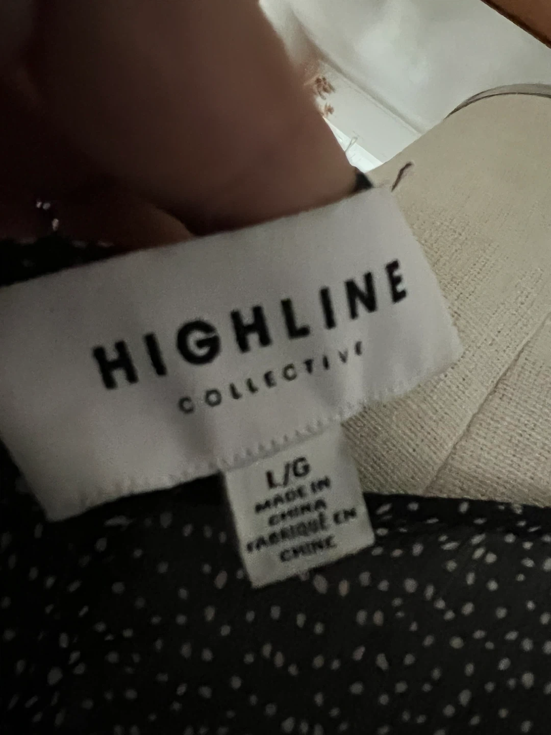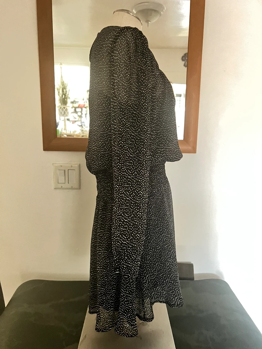 This is a lovely Highline Collective dress in a black polka dot pattern. It's a size large. The dress appears to be in great condition and ready for a new home!