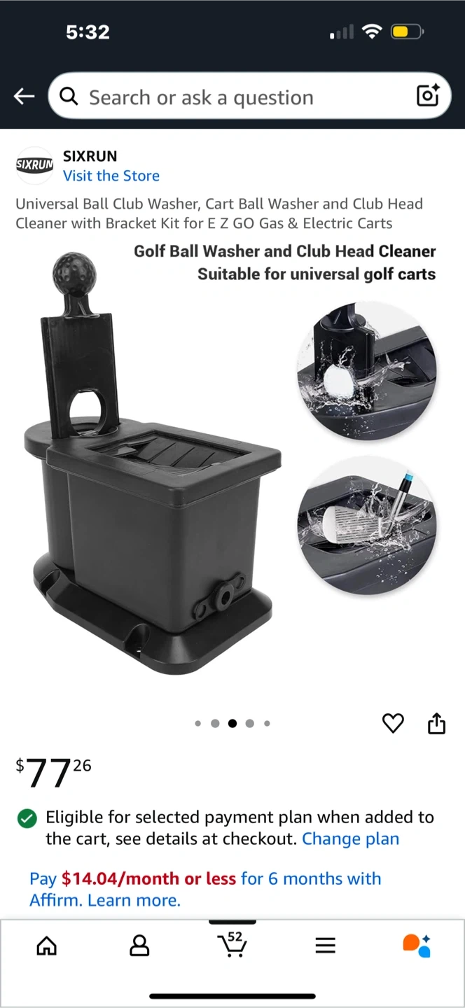 85Keep your golf balls and clubs clean with this SIXRUN universal ball club washer! It's designed for easy installation on E Z GO gas and electric carts. It includes an integrated predrilled mounting base for stable mounting on your golf cart surface.
