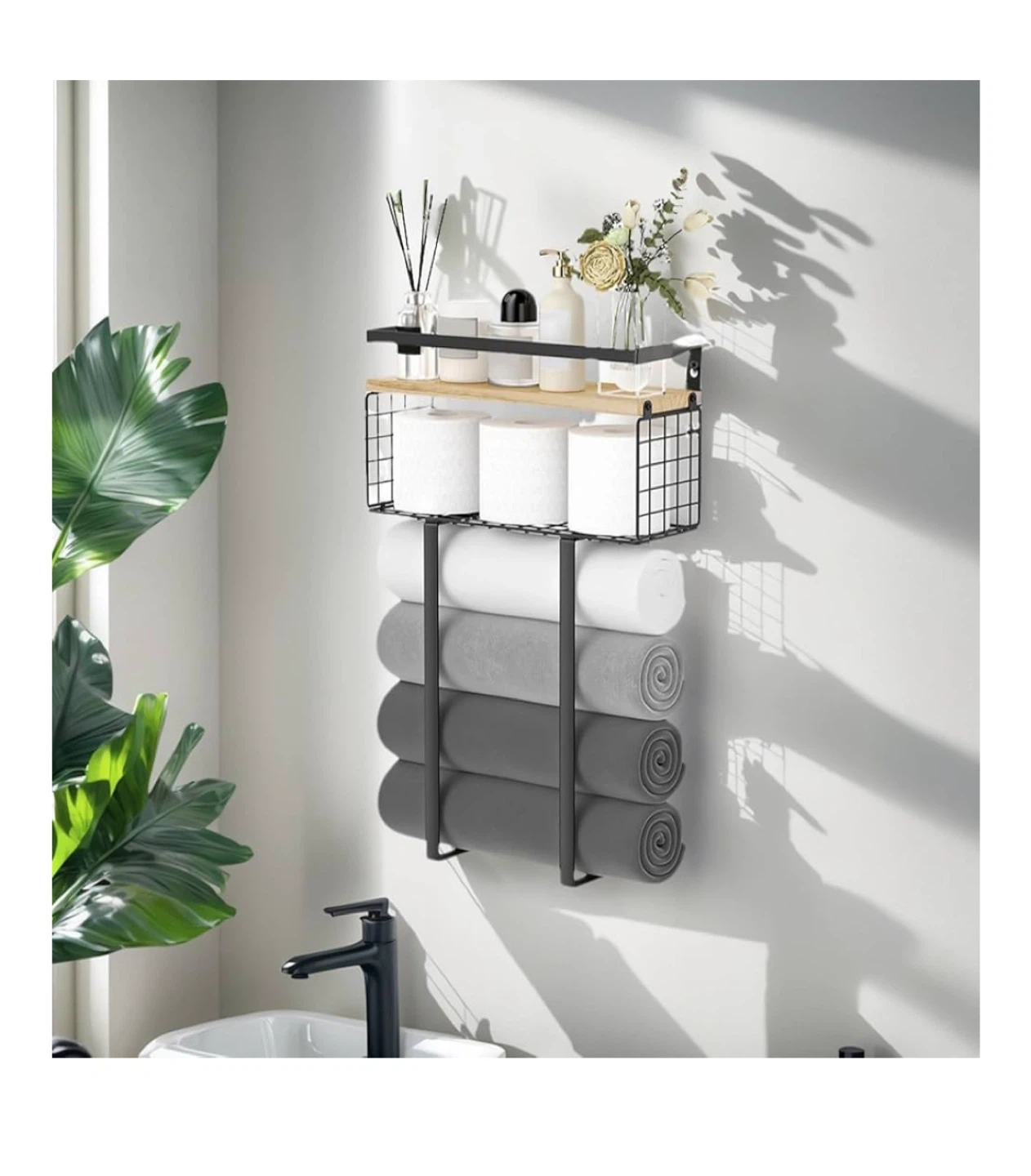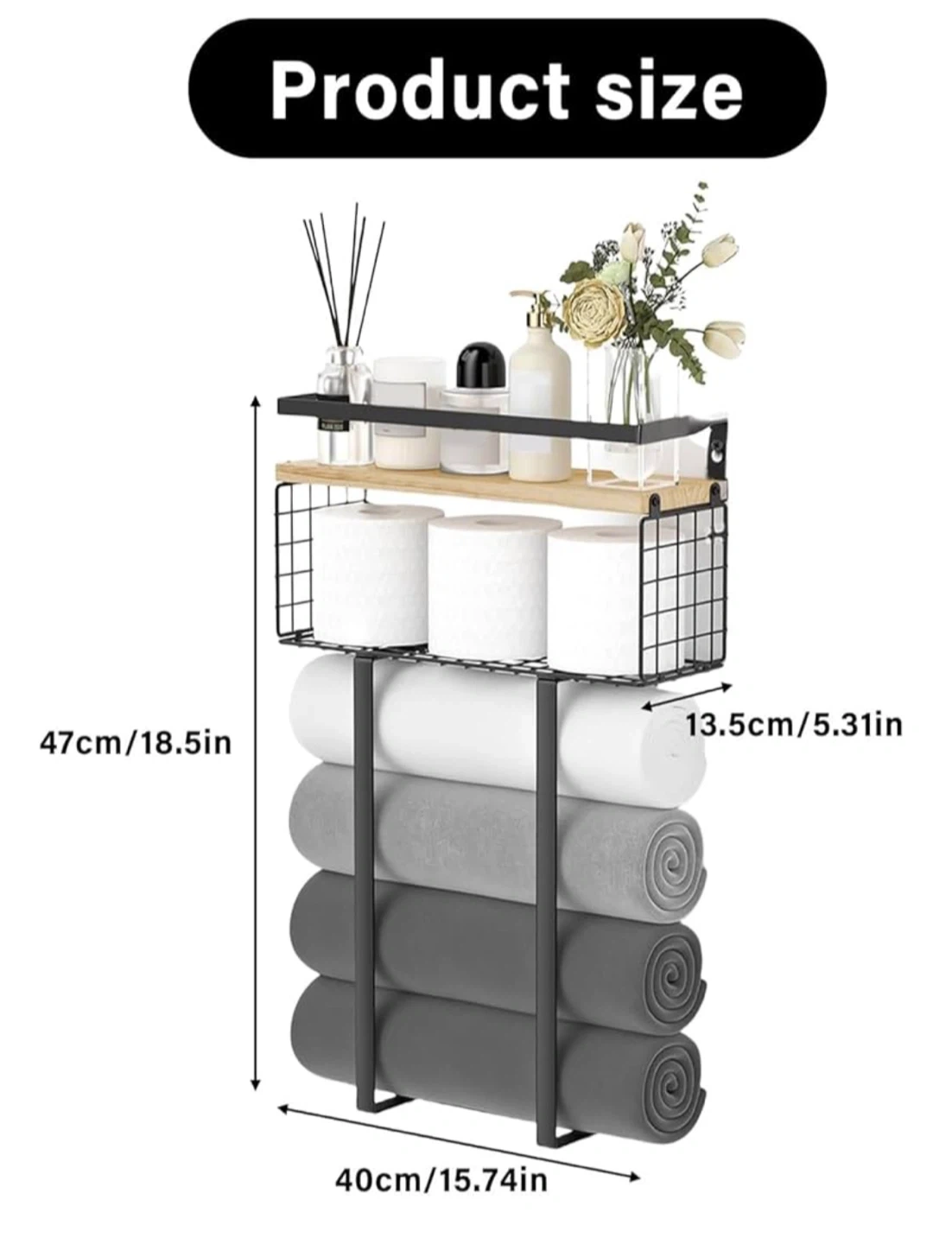 Selling a brand new wall-mounted bathroom shelf! It comes with a towel rack and is still in its original box. This shelf is perfect for adding extra storage to your bathroom. It measures approximately 47cm/18.5in in height, 40cm/15.74in in width, and the shelf depth is 13.5cm/5.31in. Includes all the necessary mounting hardware and instructions!