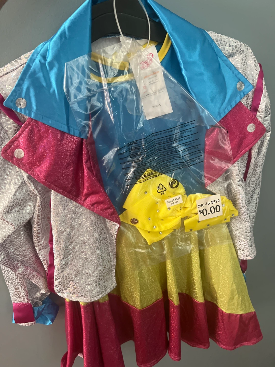 Selling a cute JoJo Siwa Nickelodeon outfit! It's a size small and features bright, fun colours. Perfect for dress-up or a costume party! The outfit includes a jacket and dress.