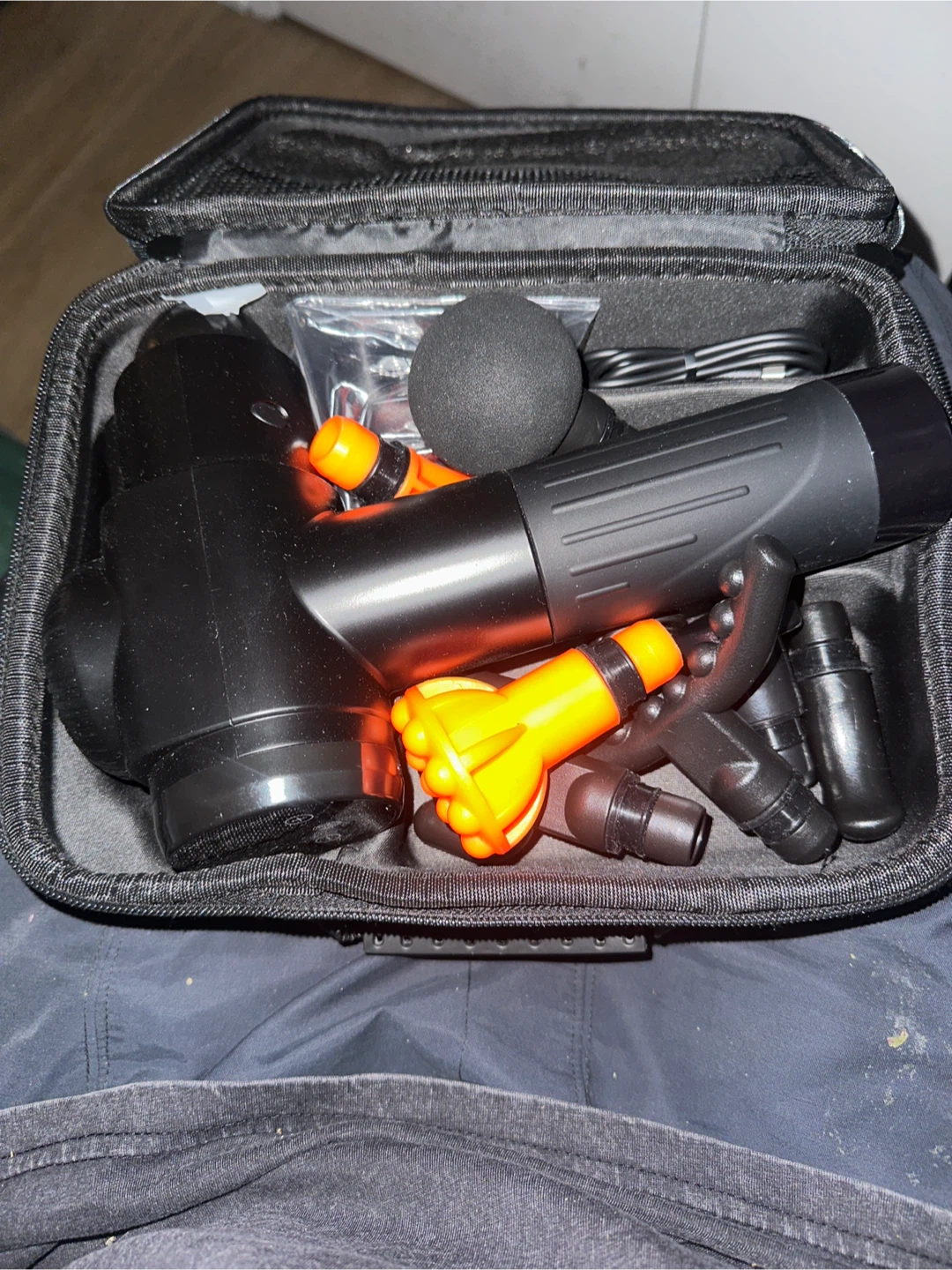 Selling a massage gun that comes with multiple attachments. It's in great condition and ready to help relieve those sore muscles! Includes a carrying case for easy storage and portability