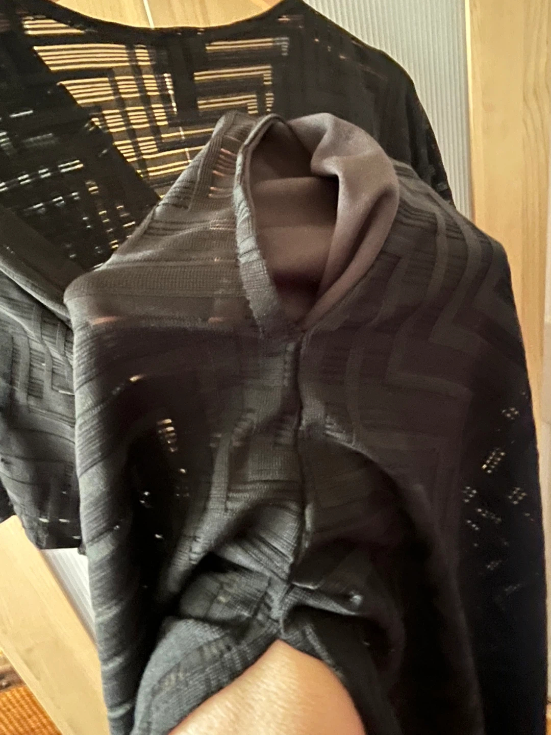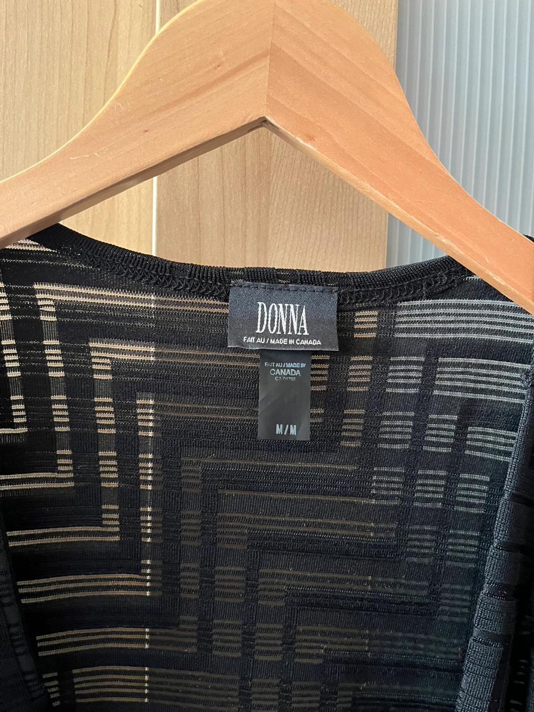Selling a Donna brand black cover-up in size Medium. It's made of 93% polyester and 7% spandex. Perfect for layering or wearing as a light jacket, or even as a bathing suit cover up. It has a zippered front and side slits and pockets on each side. Glendale SW area
