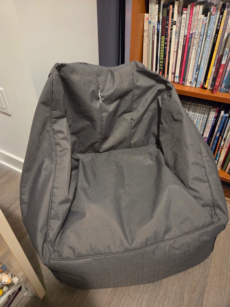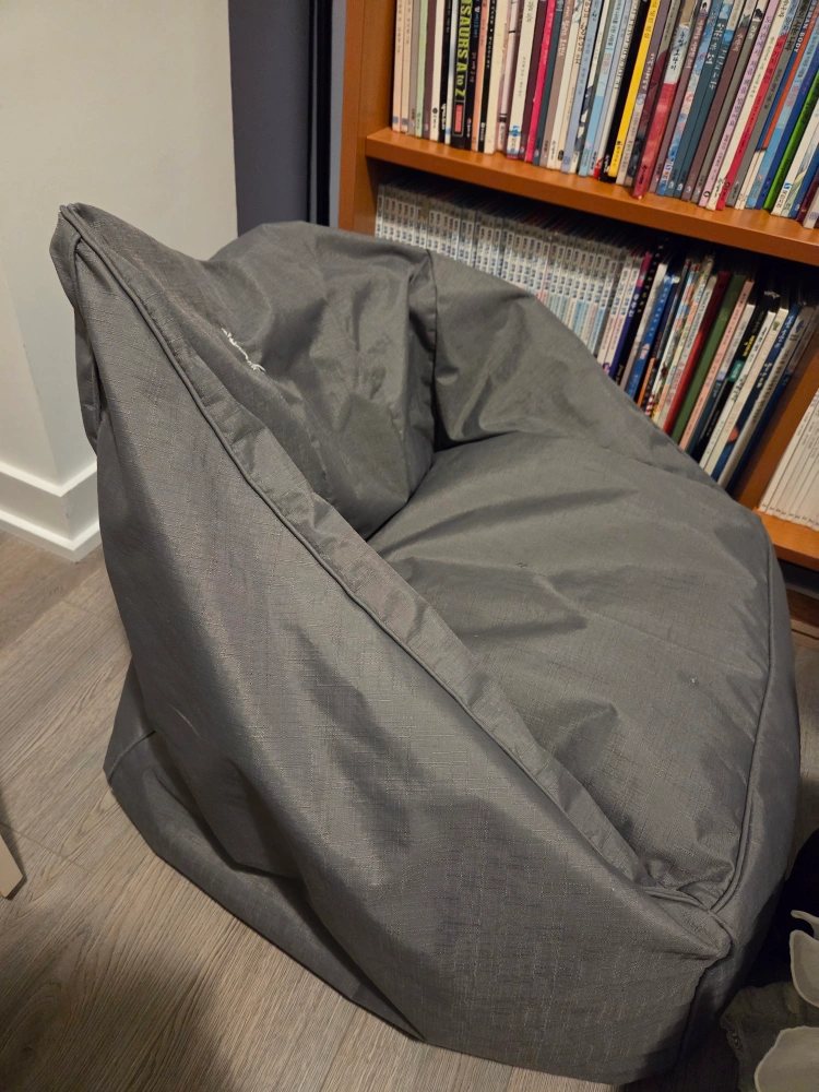 Selling a comfy grey bean bag chair! It's in good condition and perfect for relaxing or adding some casual seating to your space. Had a tear but it's been securely seen (as shown in pic), no spilling of content