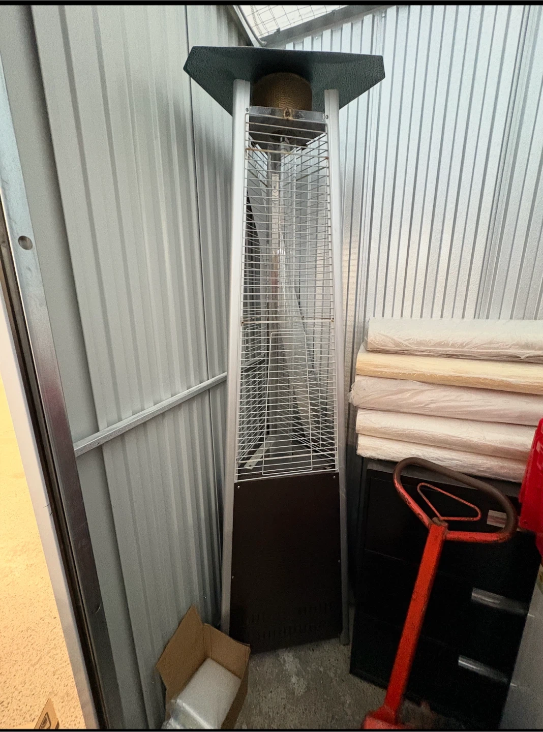 Keep your patio cozy with this tall outdoor propane heater! It's perfect for extending your outdoor season. It provides warmth and ambiance for gatherings, even on chilly evenings