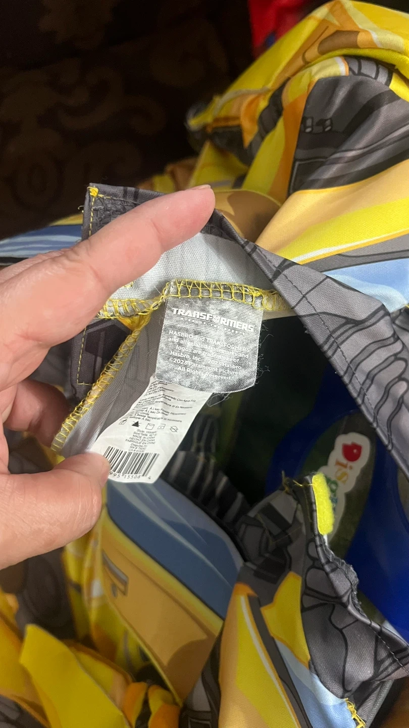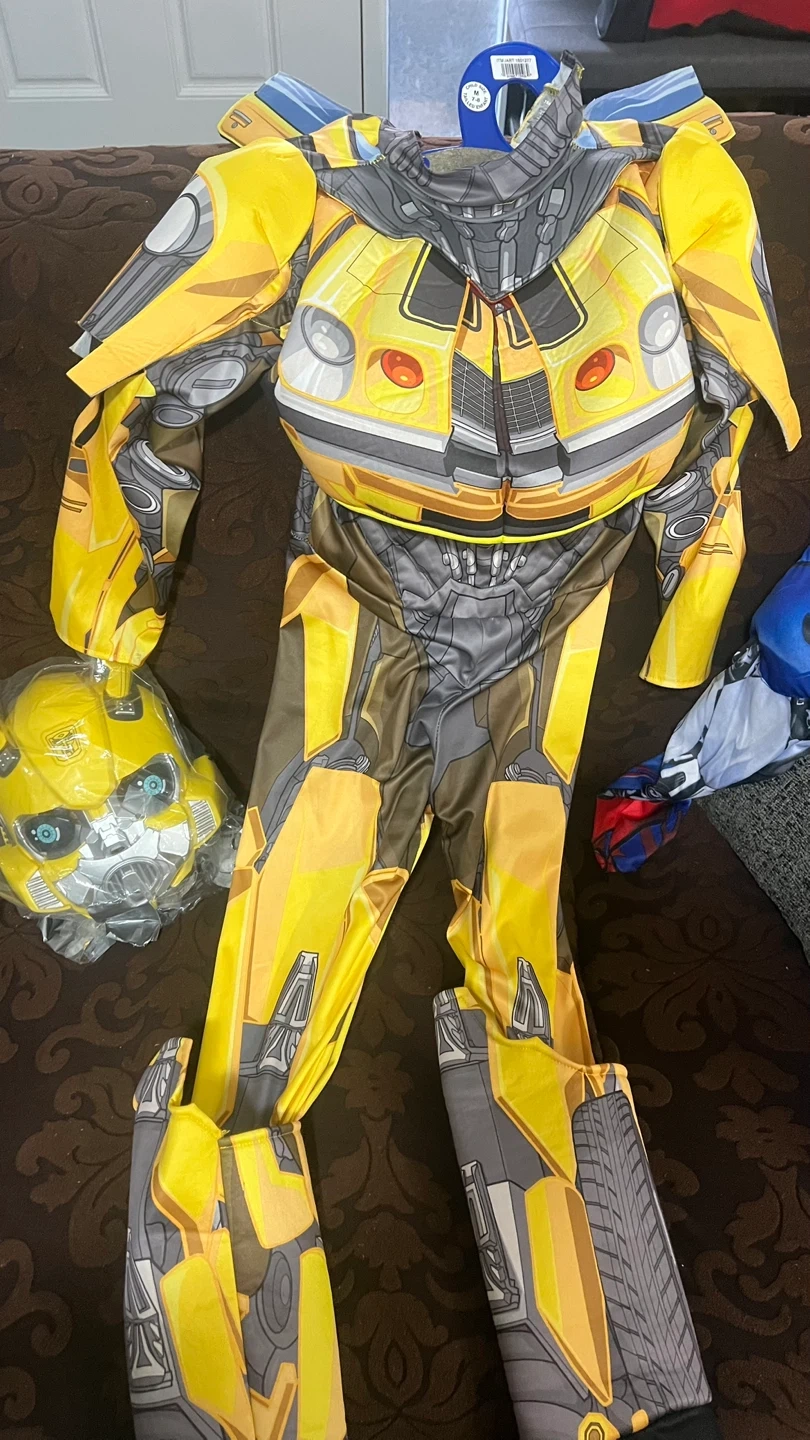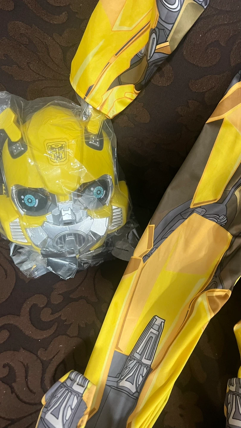 Get ready to transform into Bumblebee with this fun costume! It includes a mask and jumpsuit, perfect for playtime or Halloween. The costume features the iconic yellow and grey design of Bumblebee from Transformers.