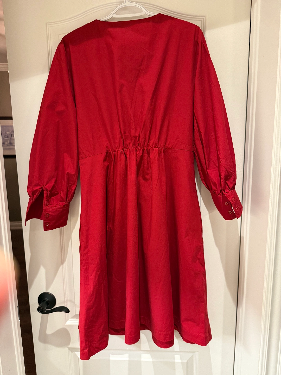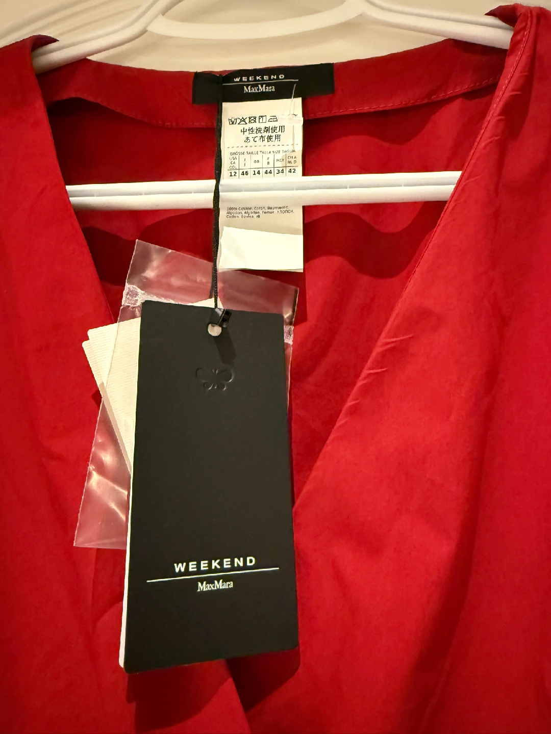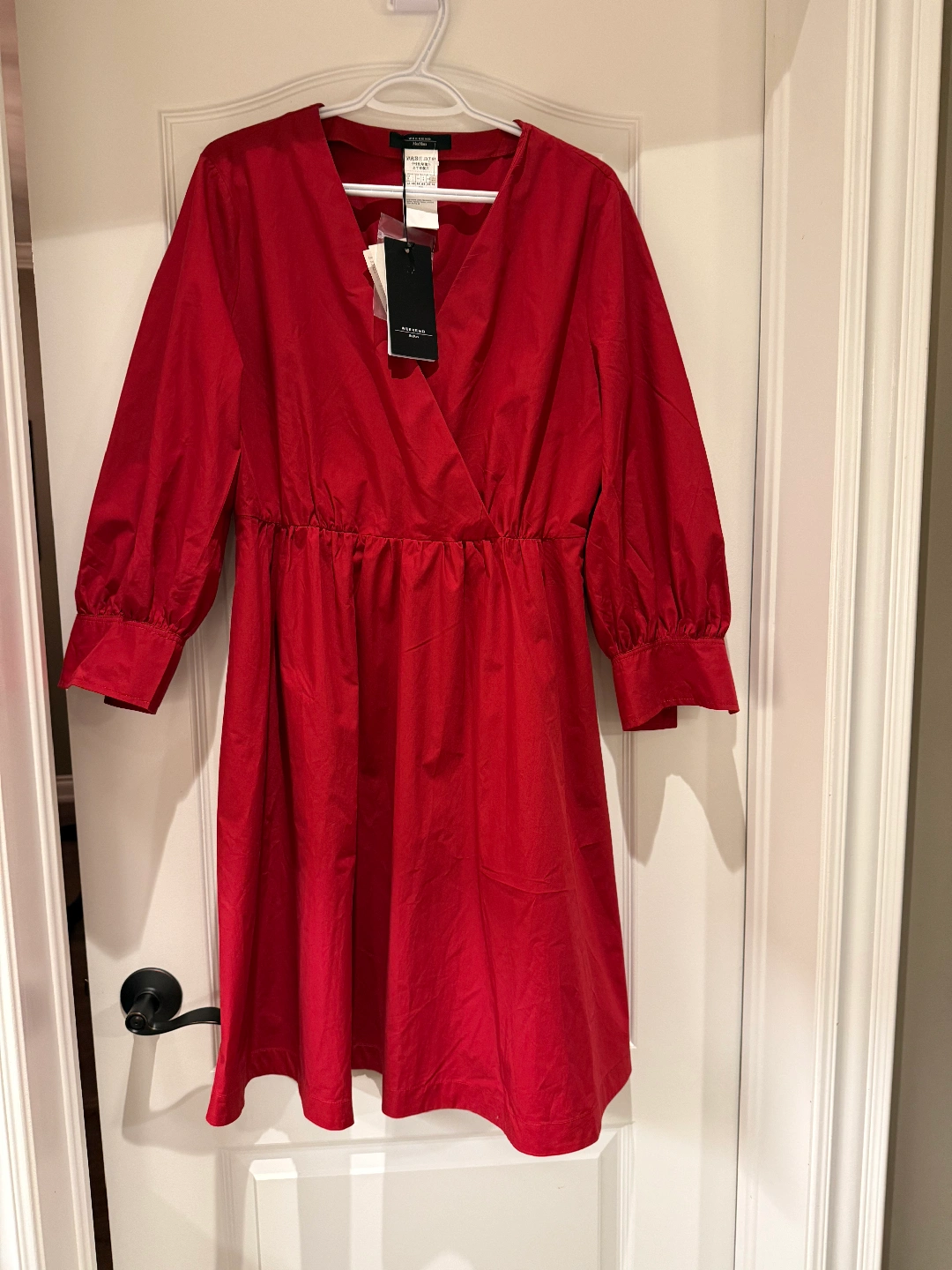 New Weekend MaxMara red dress, size 12. This is a beautiful dress features a flattering wrap style and comfortable fit. Perfect for any occasion!