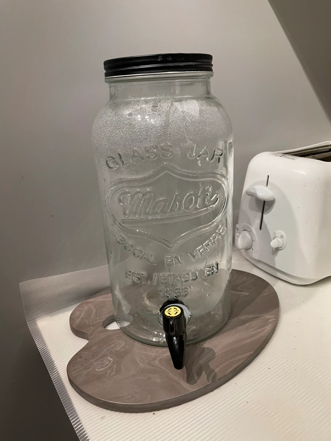 Glass jar drink dispenser with a spigot. Perfect for parties or everyday use! It's in great condition and ready to go to a new home Cash only