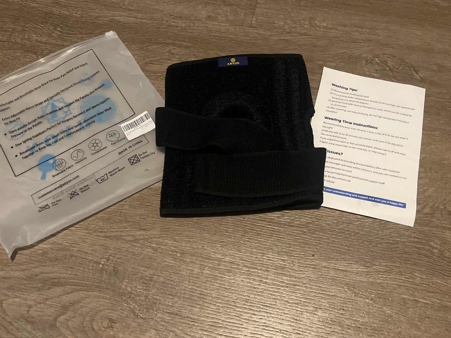 I'm selling an ABYON knee brace designed for knee pain relief. It features side stabilizers for men and women, effective for meniscus tear, LCL, and MCL. It provides extra support and stability and is perfect for surgery recovery and sports injuries. Breathable fabric ensures comfort, and the four spring stabilizers provide excellent support and reduce joint tissue stress