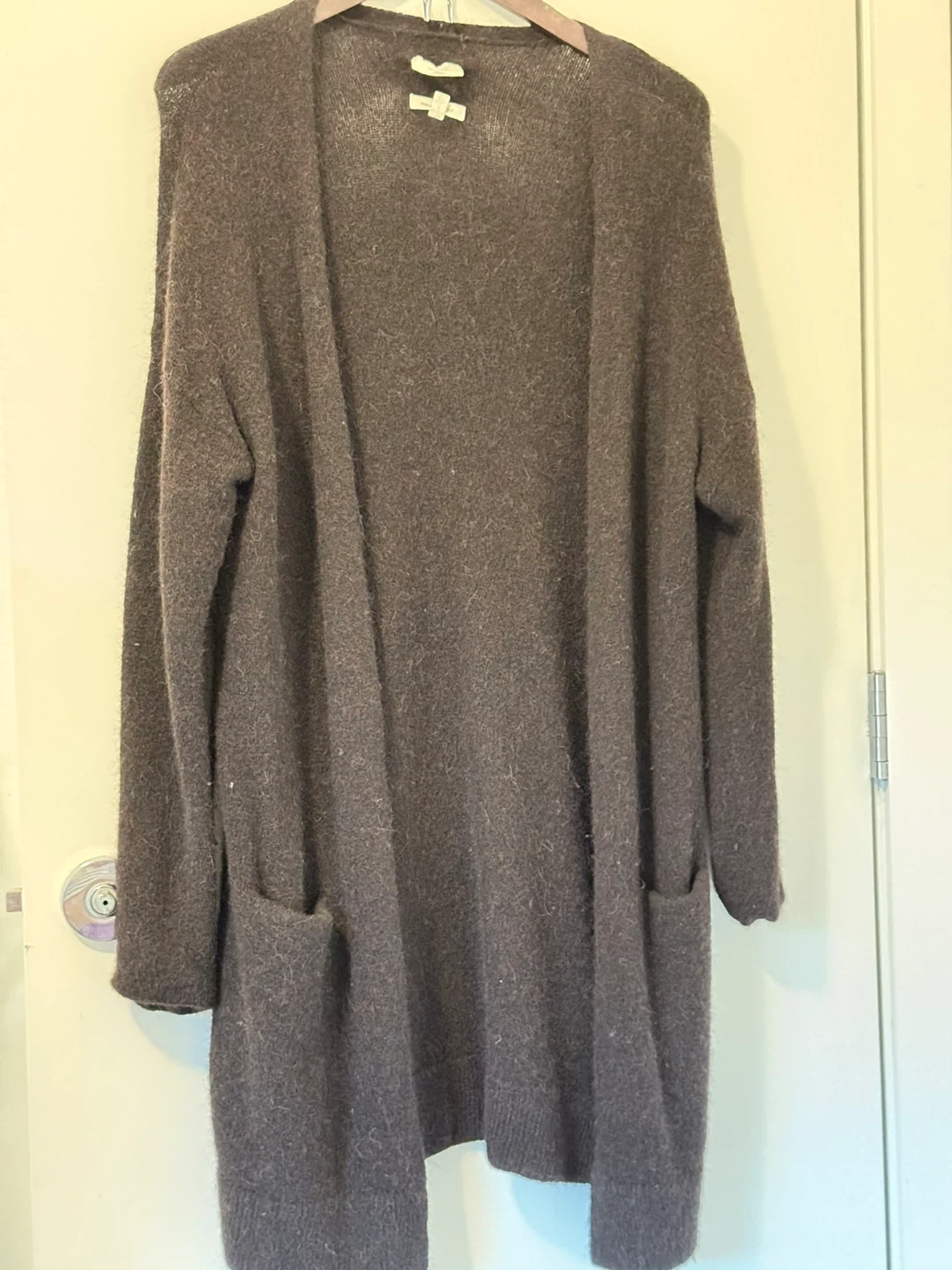 21Update your fall wardrobe with this Cozy Wilfred cardigan in size small. The yarn is made in Italy, adding a touch of luxury. Perfect for layering on chilly days! Very cozy and warm !