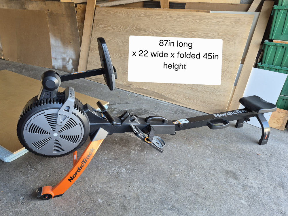 Selling a NordicTrack RW200 rowing machine. It features adjustable resistance and a digital display to track your workout. It also has a space-saver design for easy storage when not in use. Dimensions when folded are 87 inches long x 22 inches wide x 45 inches in height
